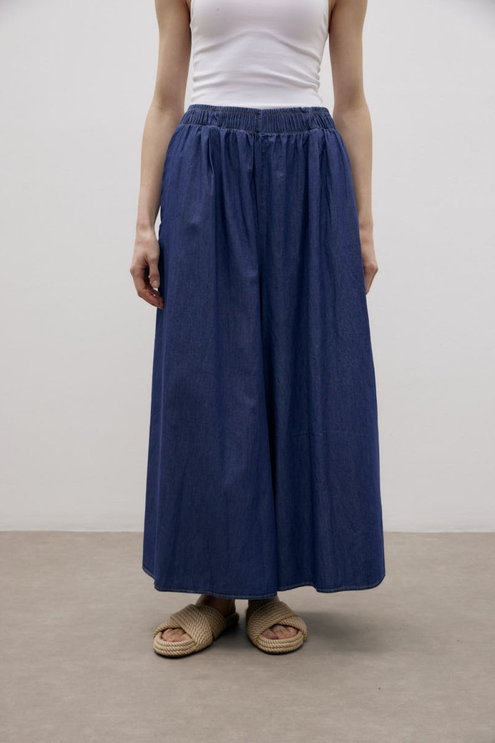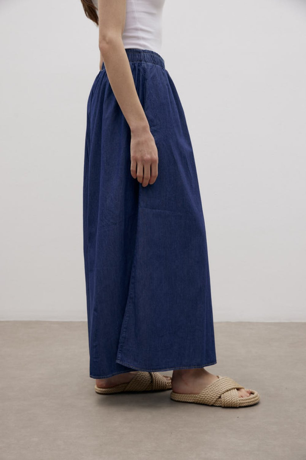 Rahatlığı ve şıklığı bir araya getiren beli lastikli tensel kot pantolon-etek, geniş ve akışkan yapısıyla günlük kombinleriniz için mükemmel bir tercihtir. Nefes alabilen tensel kot kumaşı sayesinde konforlu bir kullanım sunarken, bol kesimiyle özgür bir hareket alanı sağlar. Yan cepler detayıyla günlük kullanım için pratiklik sunar.