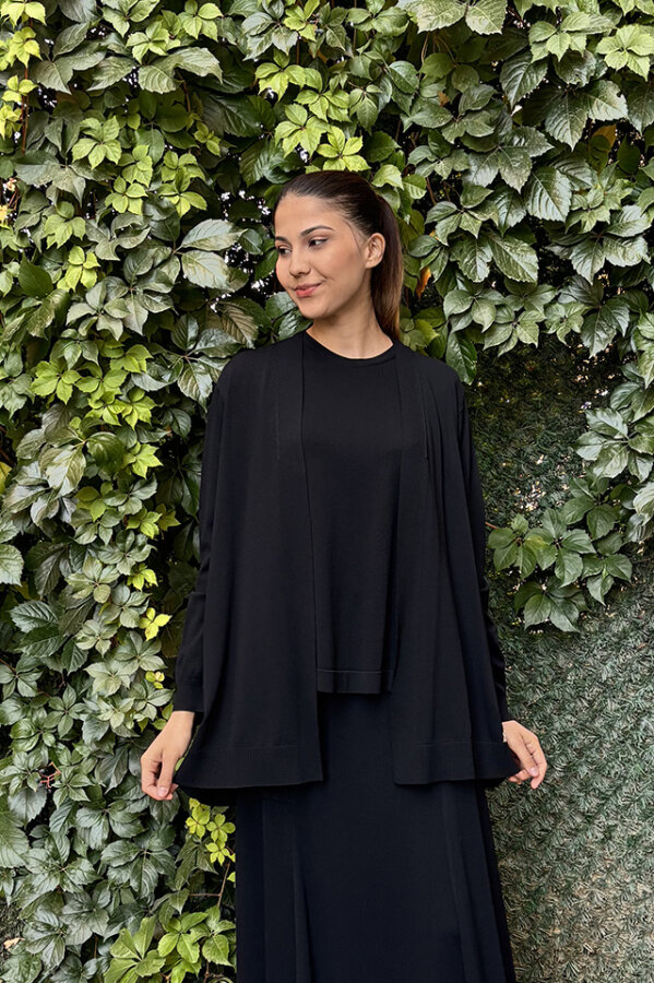 Miss Dalida Arkası Örgü Motifli Hırkalı Takım BLACK