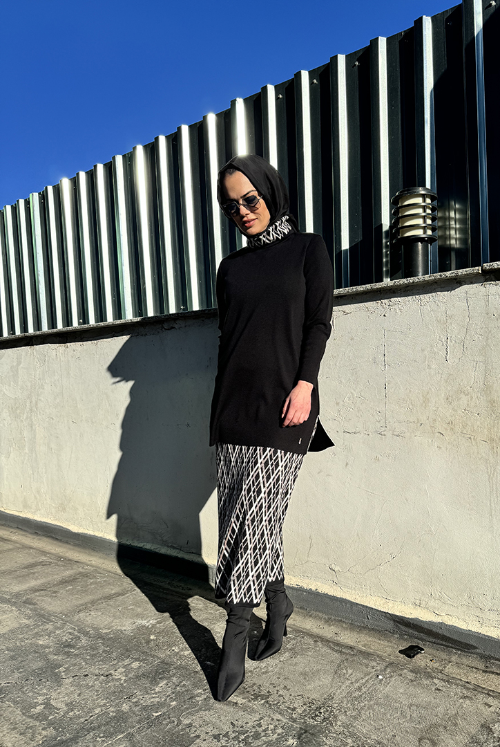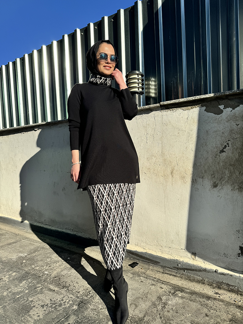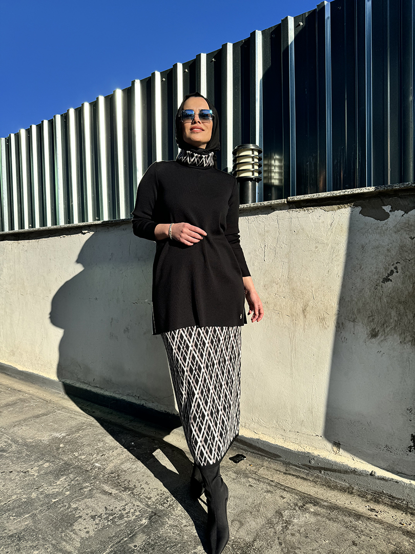 Miss Dalida Baklava Dilimli Kalem Etek BLACK