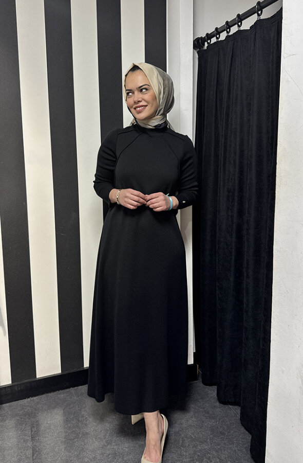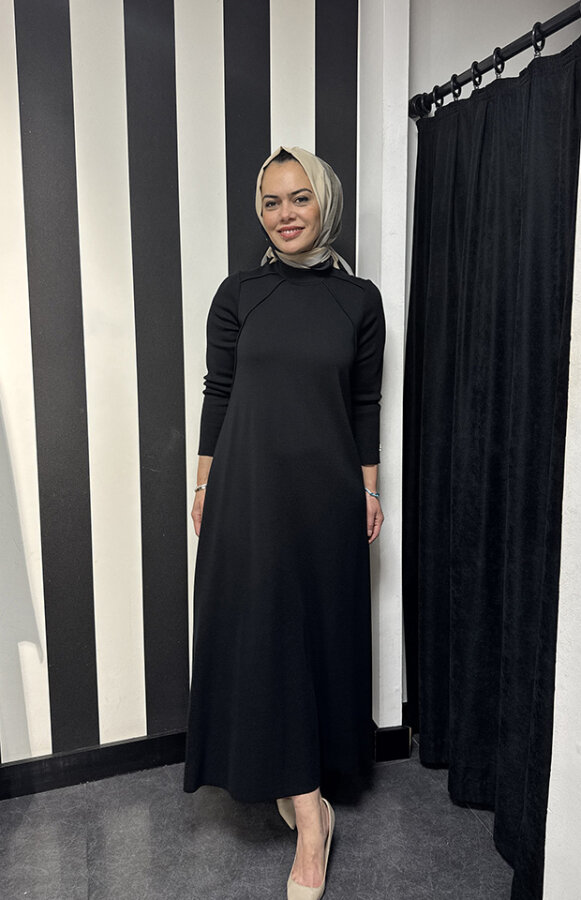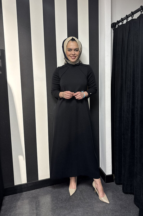 Miss Dalida Balıkçı Yaka Triko Elbise BLACK