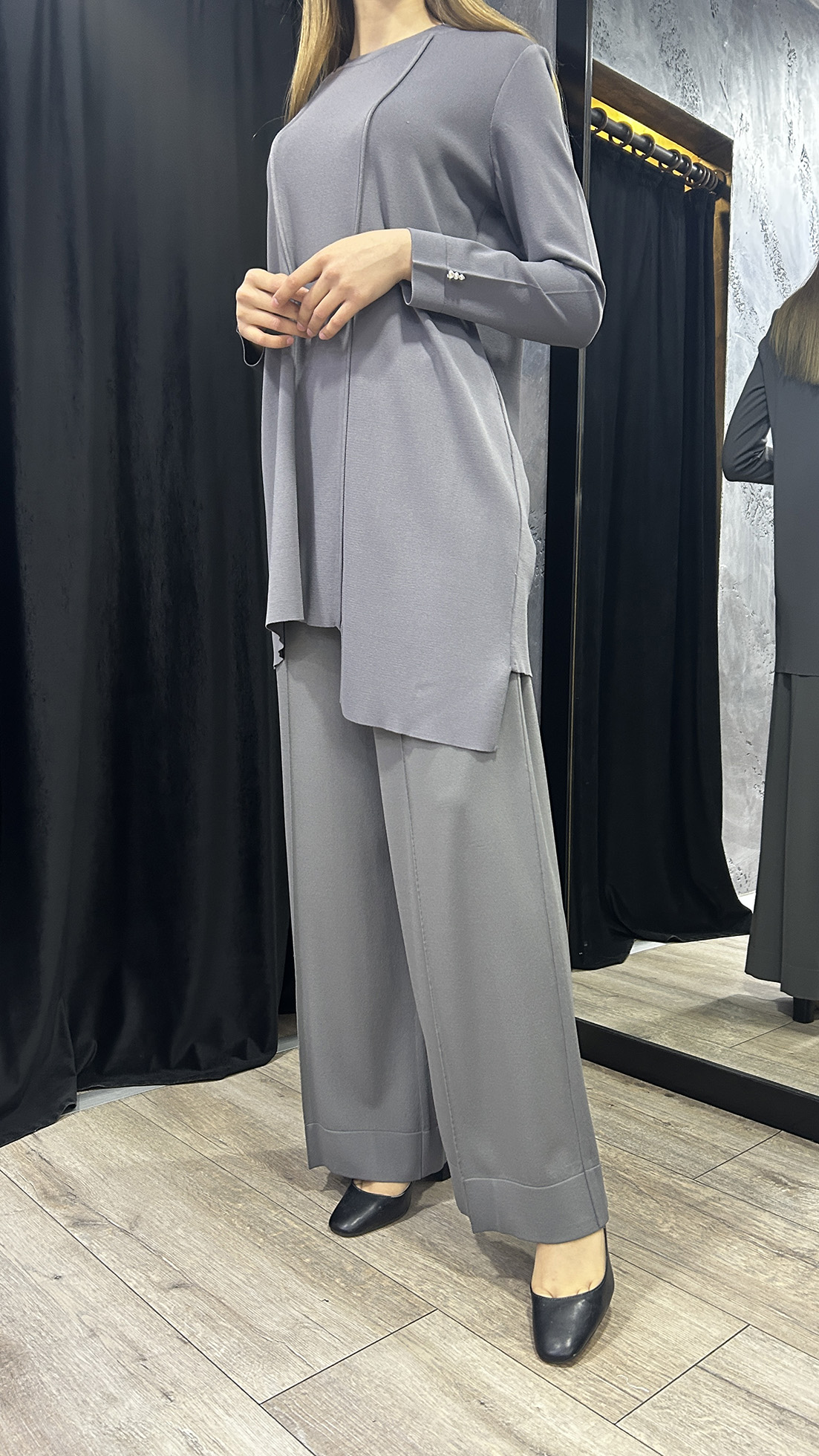 Miss Dalida Bekletme Detaylı Asimetrik Kesim Triko Tunik ANTRASİT
