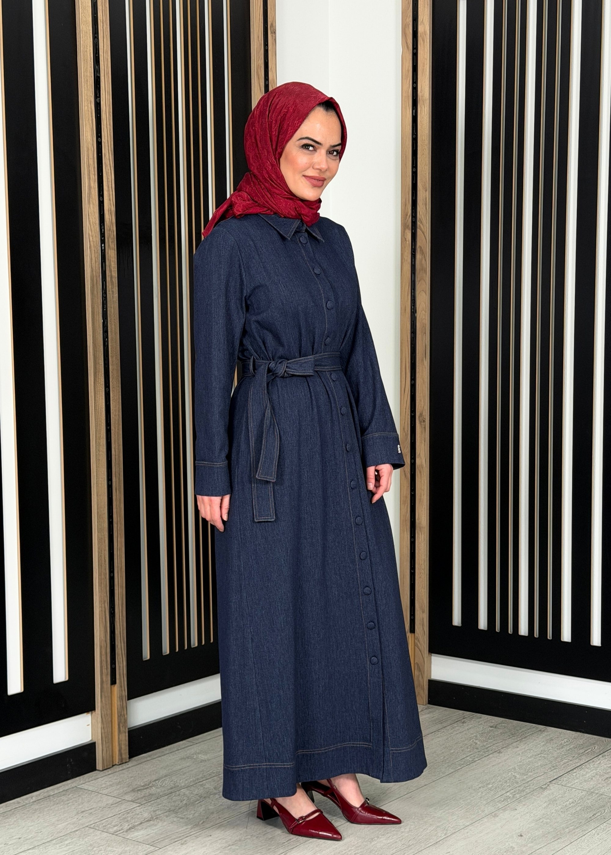 Zarif düğme detayları ve belden bağlama formu ile öne çıkan elbise, klasik ve modern şıklığı bir arada sunar. Uzun ve dengeli kesimi sayesinde zarif bir silüet oluştururken, günlük kullanımda ve özel kombinlerde rahatlıkla tercih edilebilecek zamansız bir parçadır. Yumuşak dokulu kumaşı ile gün boyu konfor sağlarken, sade ve şık tasarımı ile stil sahibi bir görünüm kazandırır.