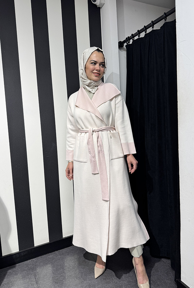 Miss Dalida Beli Kuşaklı Uzun Hırka Bluff/Powder