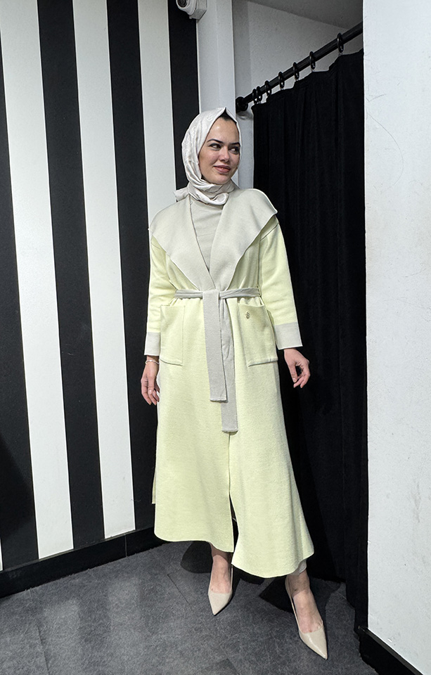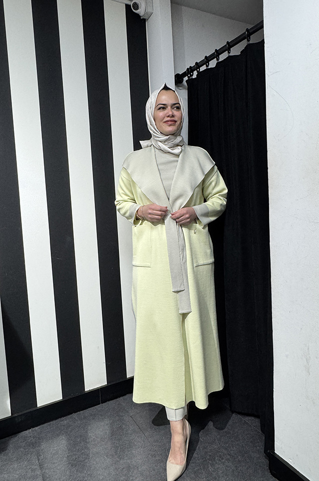 Miss Dalida Beli Kuşaklı Uzun Hırka Felix/Light Yellow