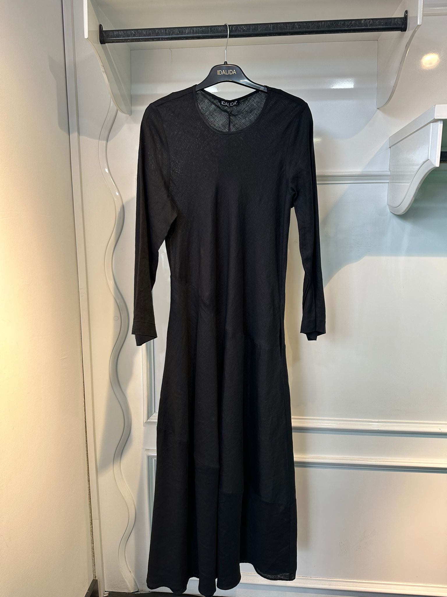 Miss Dalida Black Kendinden Parçalı Uzun Keten Elbise BLACK