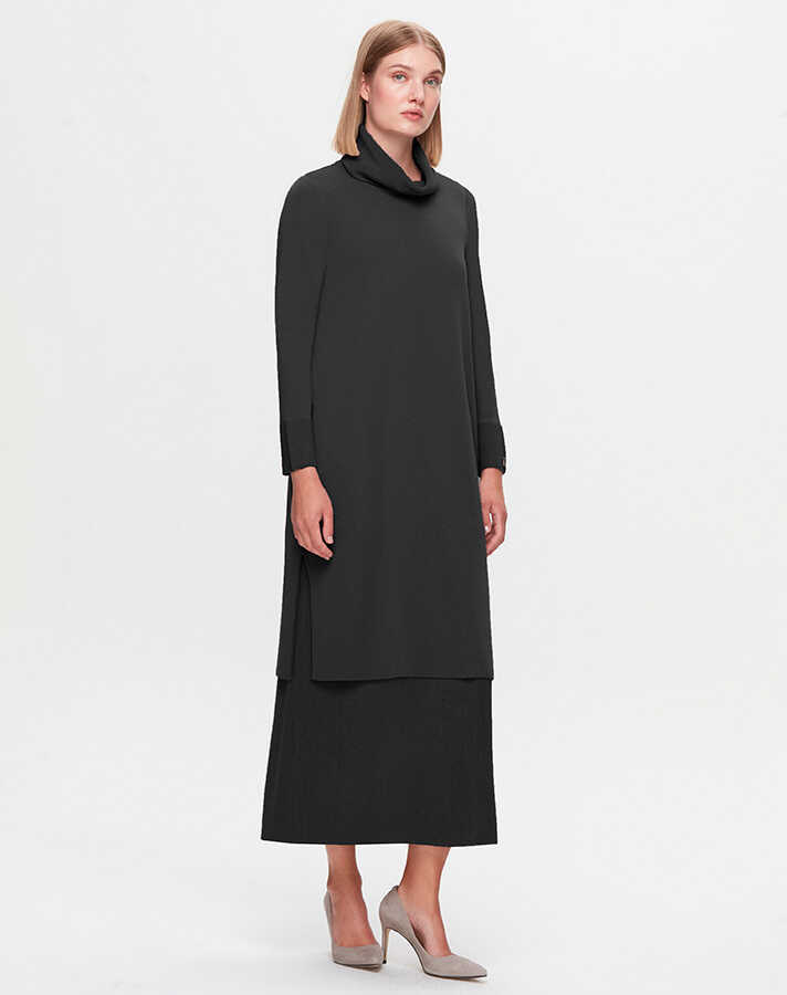 Miss Dalida Boğazlı Yaka Uzun Elbise BLACK