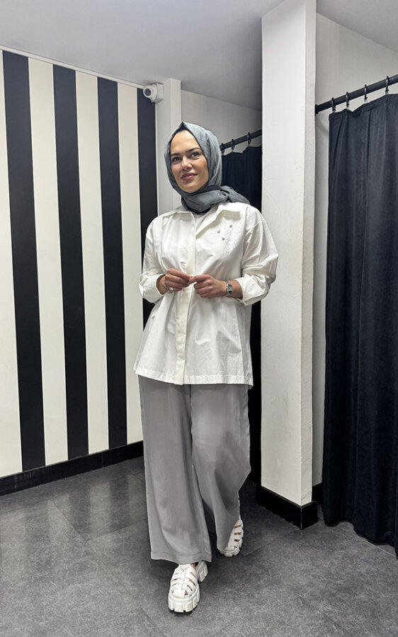 Yeşim Özcan Sim Ve Aksesuar Detaylı Bluz Naturel