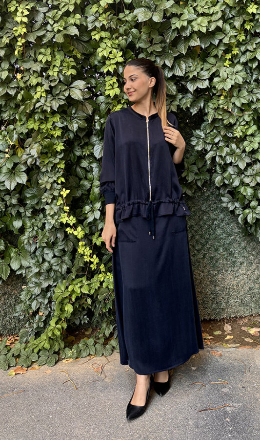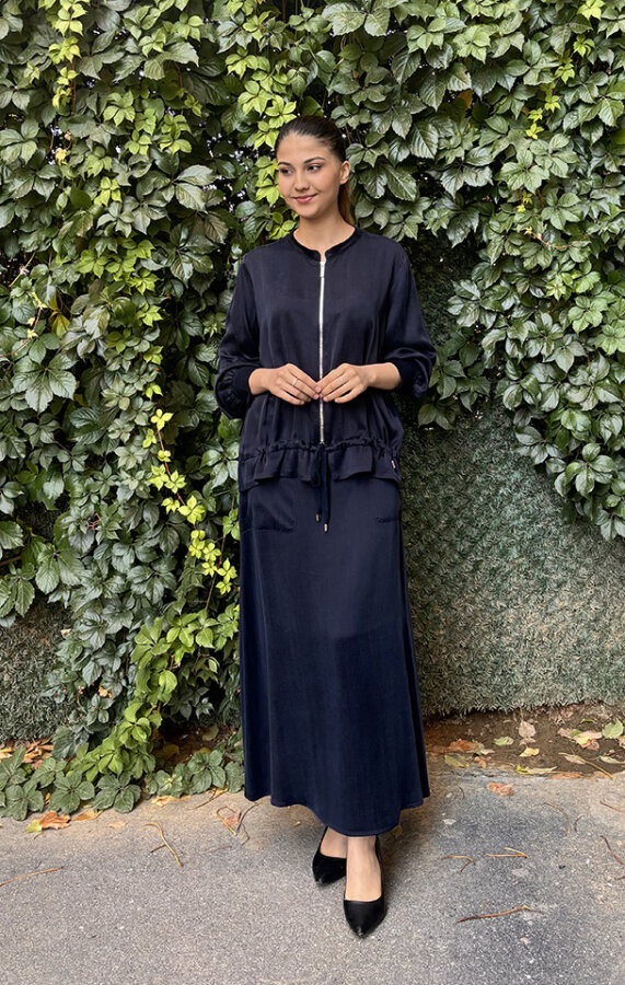 MissDalida Önü Fermuarlı Arkası Triko Cupra Ceket LACİVERT