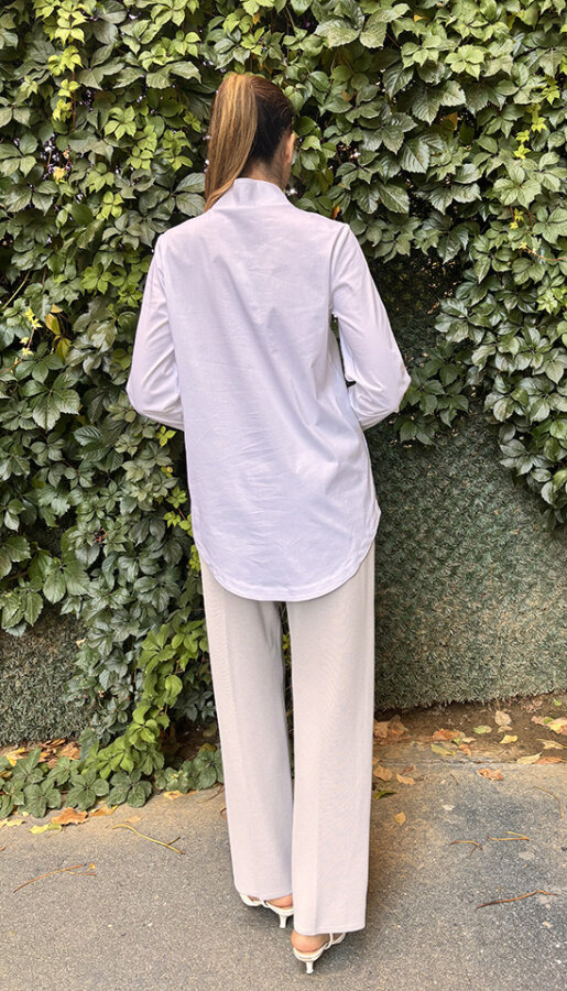Miss Dalida Beli Büzgülü Cupra Gömlek Stone