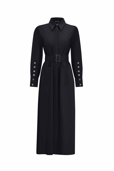 Miss Dalida Cupra Kolları Triko Elbise BLACK