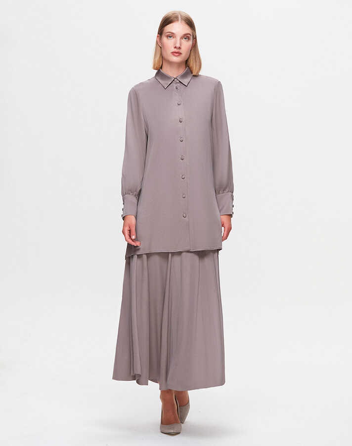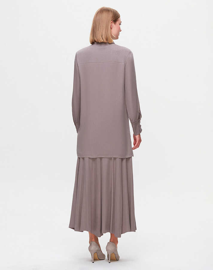 Miss Dalida Beli Büzgülü Cupra Gömlek Stone