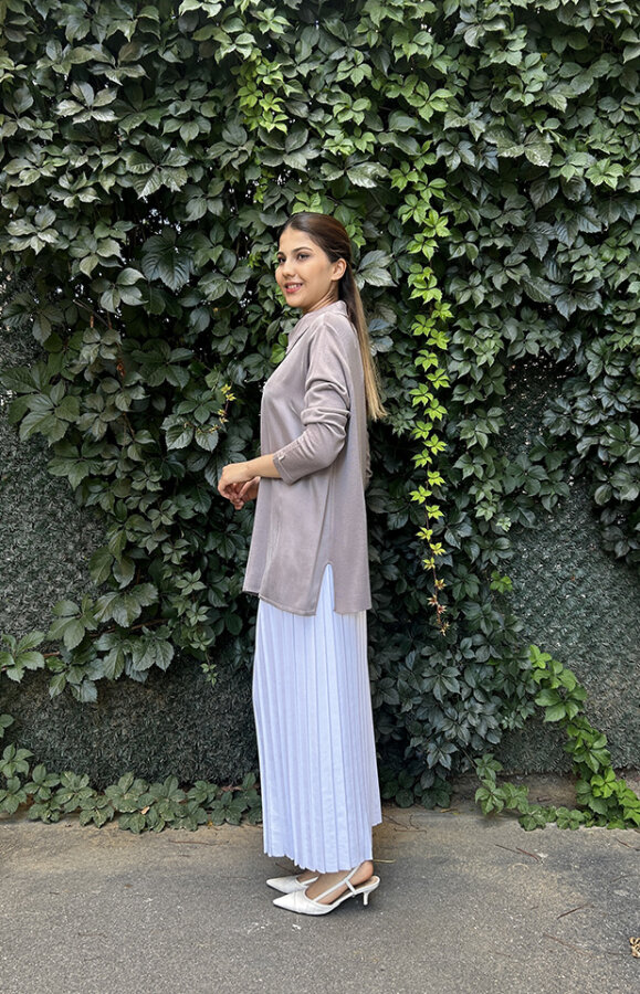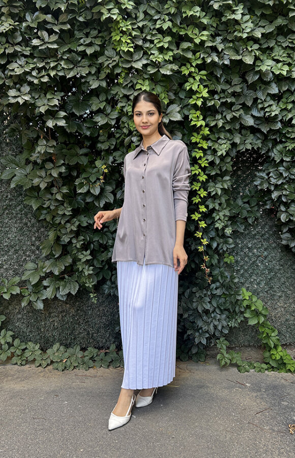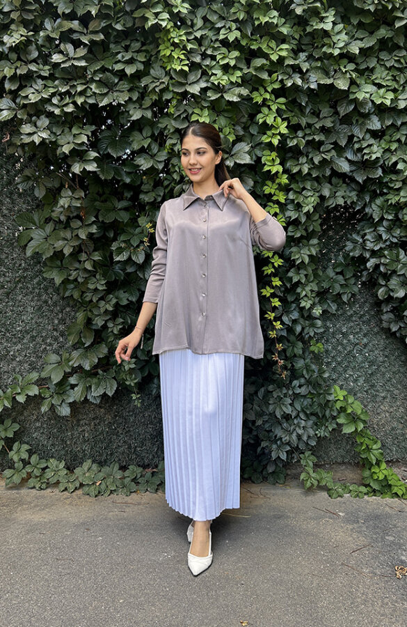 Miss Dalida Beli Büzgülü Cupra Gömlek Stone