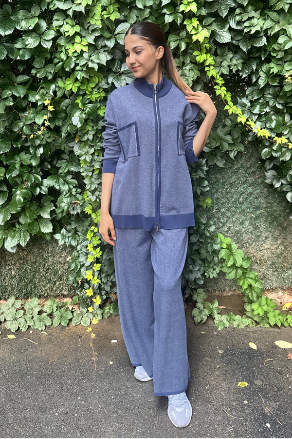 Miss Dalida Dik Yaka Fermuarlı Cepli Triko Ceket İNDİGO
