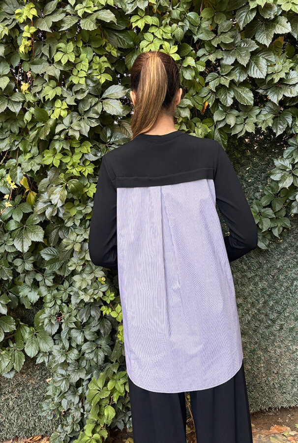 Miss Dalida Düğmeleri Ve Sırtı Poplin Triko Tunik BLACK