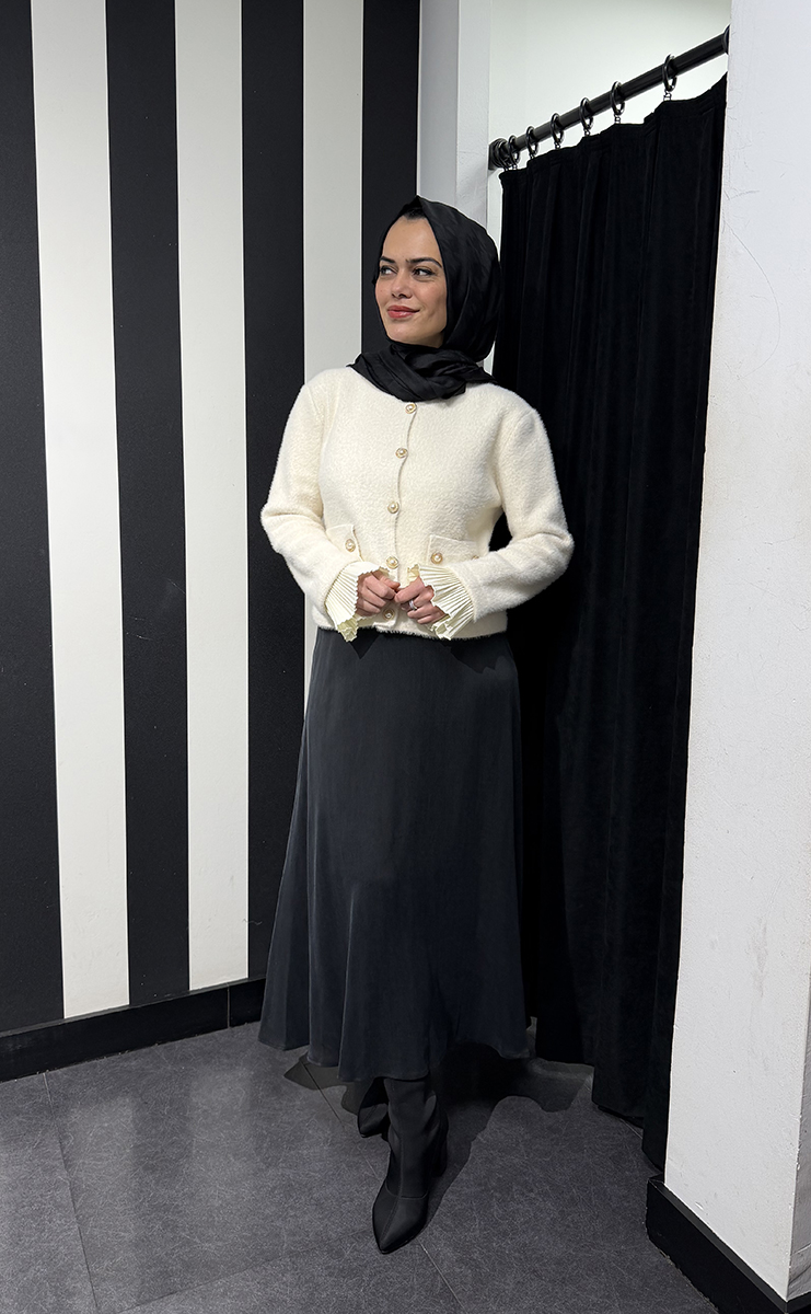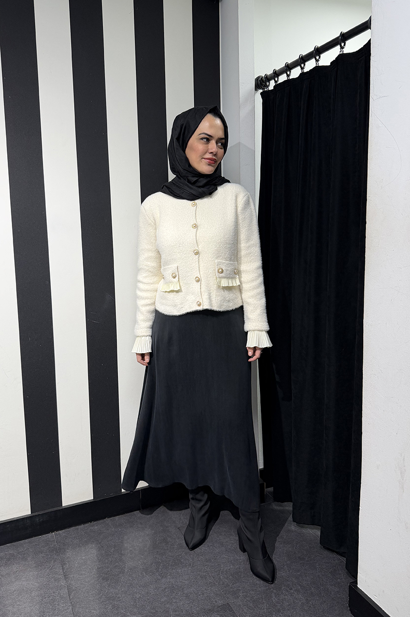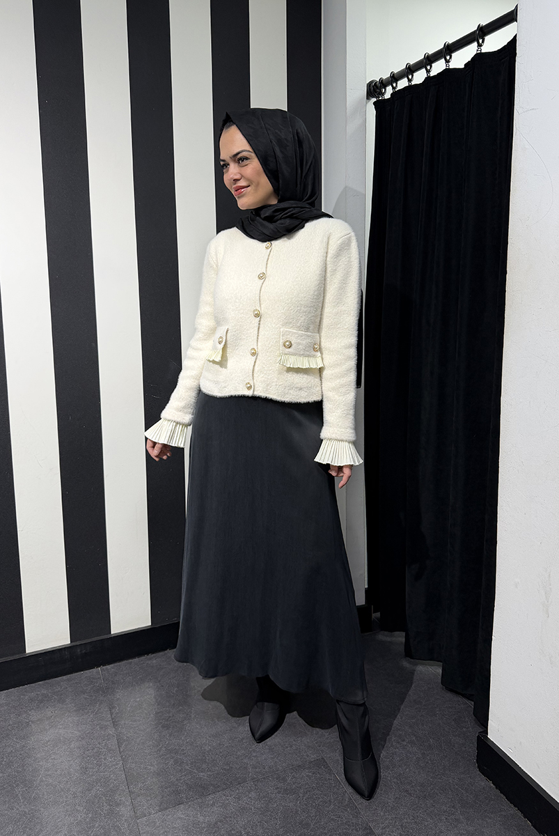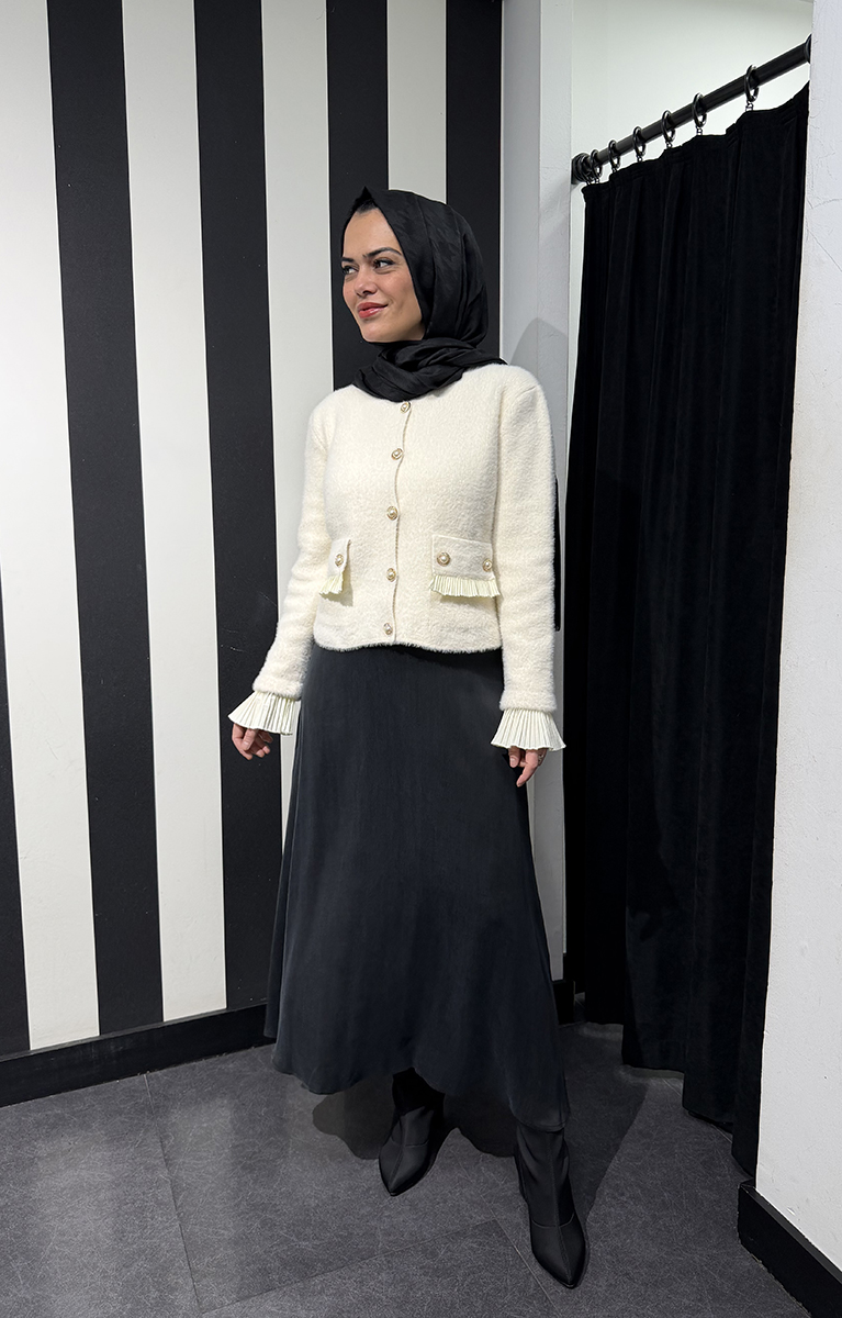 Noi Triko Angora Kol Ve Cepleri Pliseli Kısa Hırka KREM