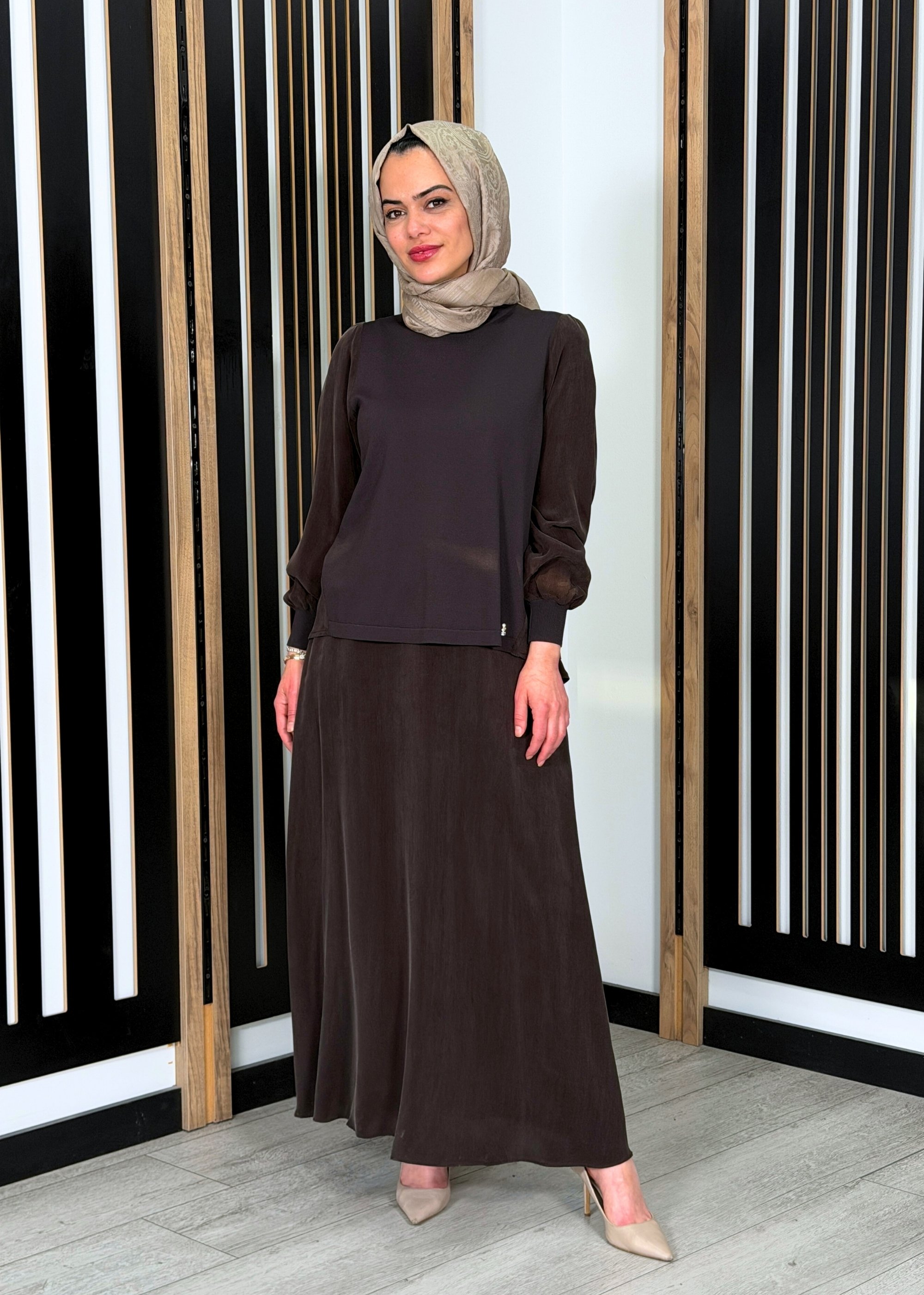 Rahat ve dökümlü kalıba sahiptir. Vücuda yapışmayan kesimi sayesinde akıcı ve zarif bir silüet oluşturur. Uzun formu ile tesettür kombinlere uyumlu, konforlu ve dengeli bir duruş sunar.