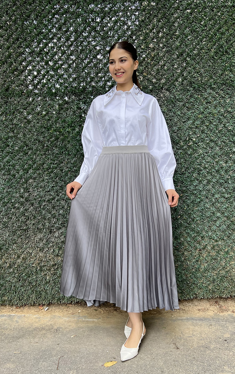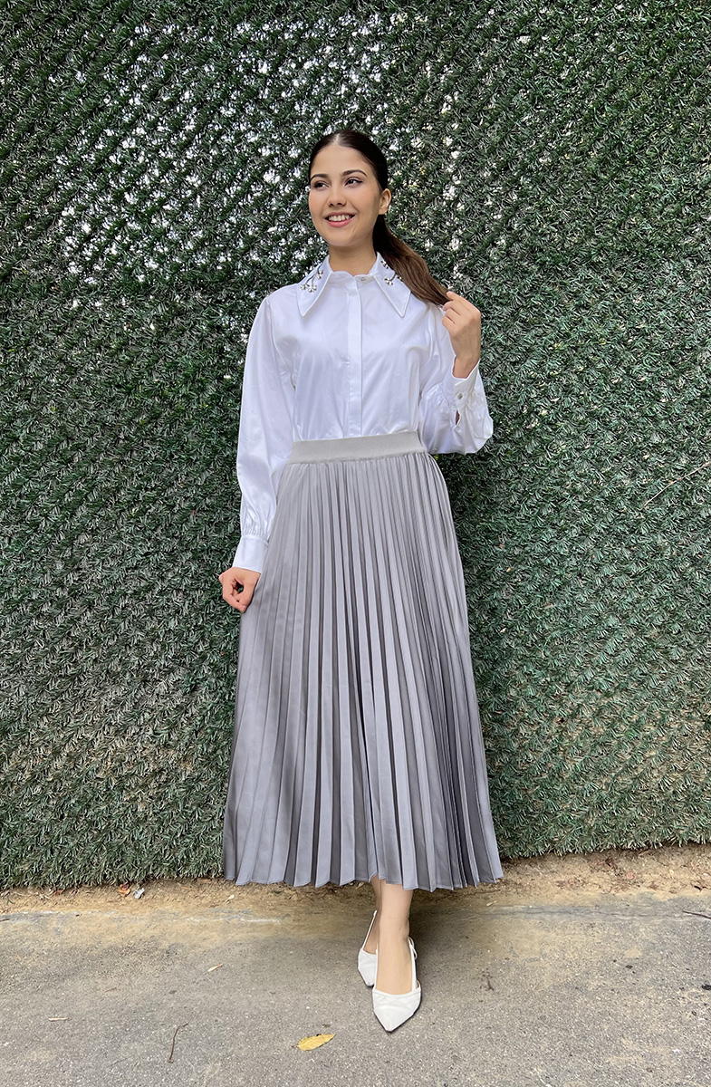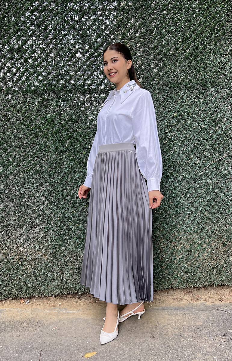 Miss Dalida Düz Renk Plise Etek ANTRASİT