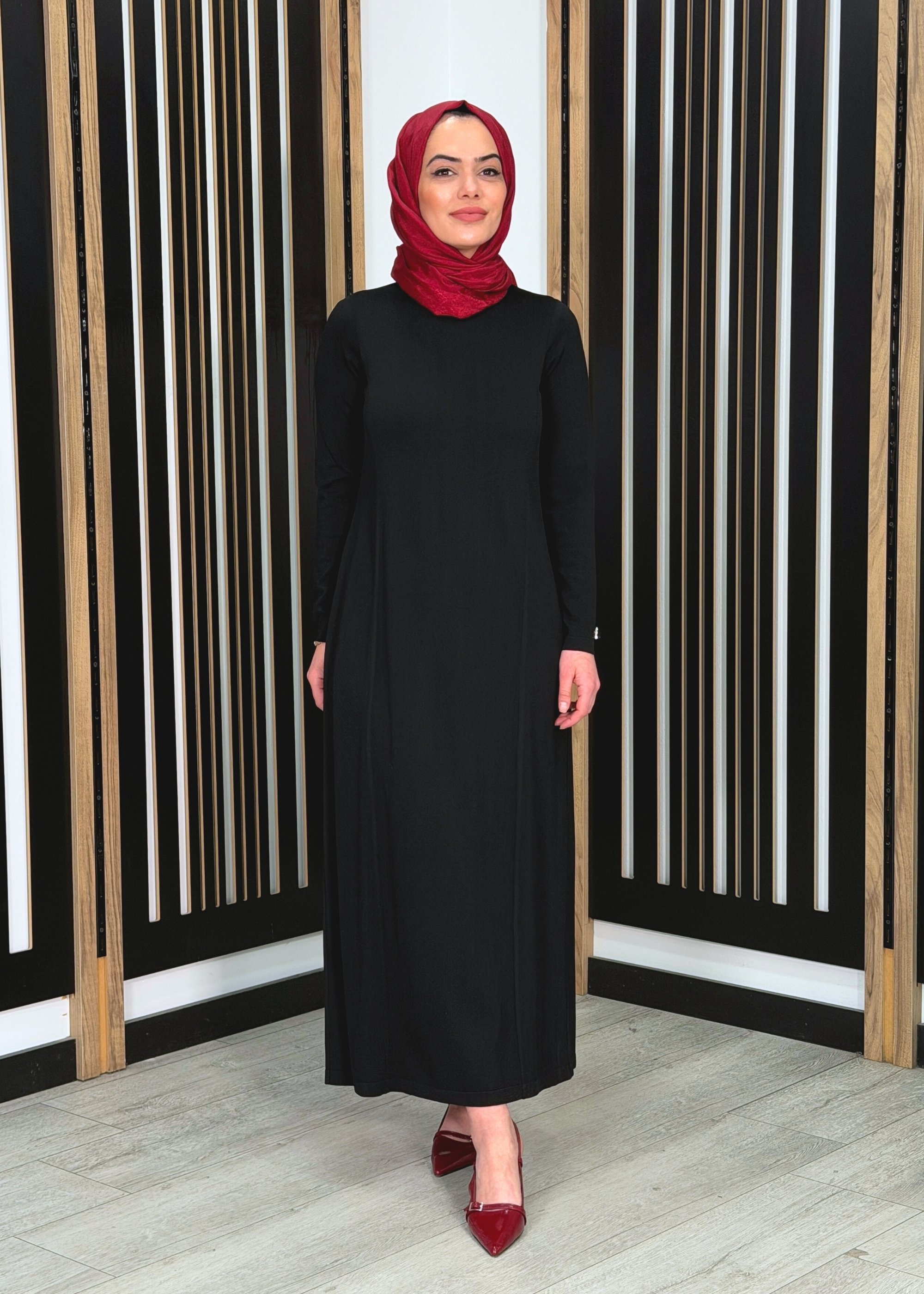 Minimal ve zamansız tasarımıyla öne çıkan elbise, sade şıklığı güçlü bir duruşla buluşturur. Uzun ve akıcı kesimi sayesinde zarif bir silüet oluştururken, günlük kombinlerden özel davetlere kadar geniş bir kullanım alanı sunar. Yumuşak dokulu kumaşı ile hem rahat hem de şık bir görünüm sağlar.