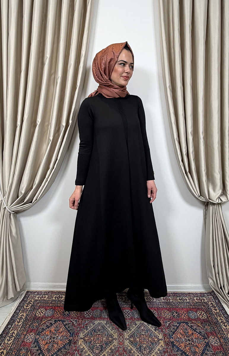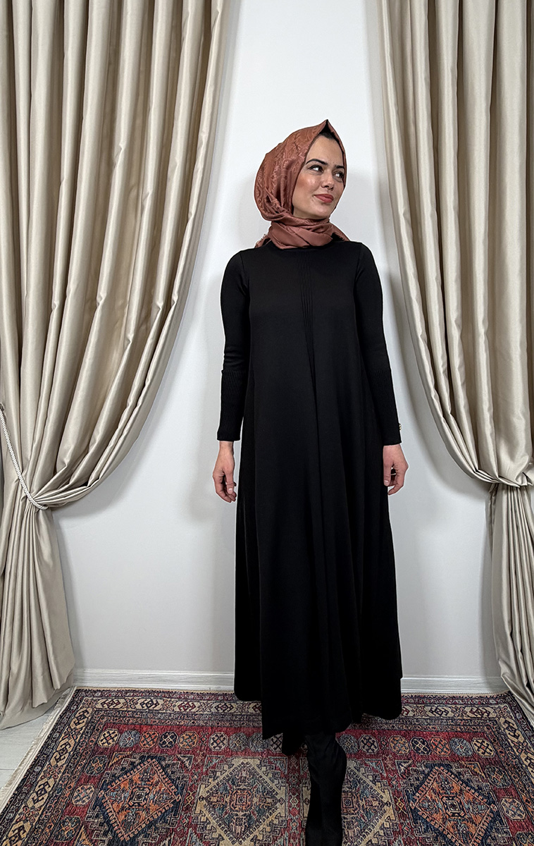 Miss Dalida Düz Renk Rahat Kesim Triko Elbise SİYAH