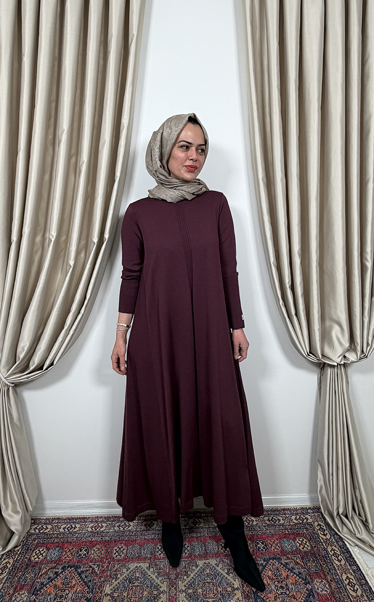 Miss Dalida Düz Renk Rahat Kesim Triko Elbise TOGA-BORDO