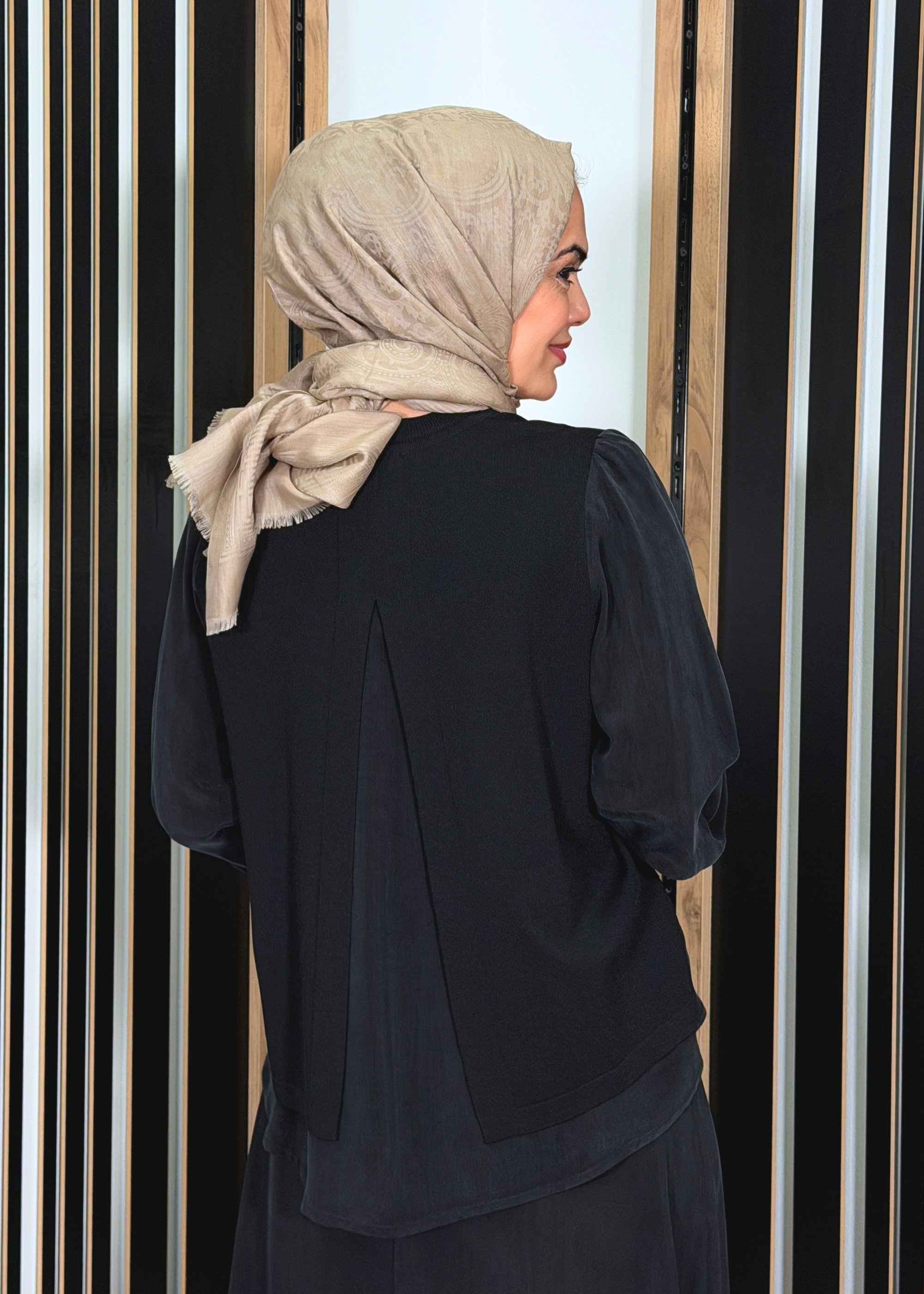 Aynı kumaştan etek veya pantolon ile kombinlenerek bütüncül ve şık bir takım görünümü elde edilebilir. Günlük kullanımda kumaş pantolon, şal ve sade aksesuarlarla tamamlanarak modern ve zarif bir stil oluşturur. Studio Nish çizgisine uygun, minimal ve zamansız bir parçadır.