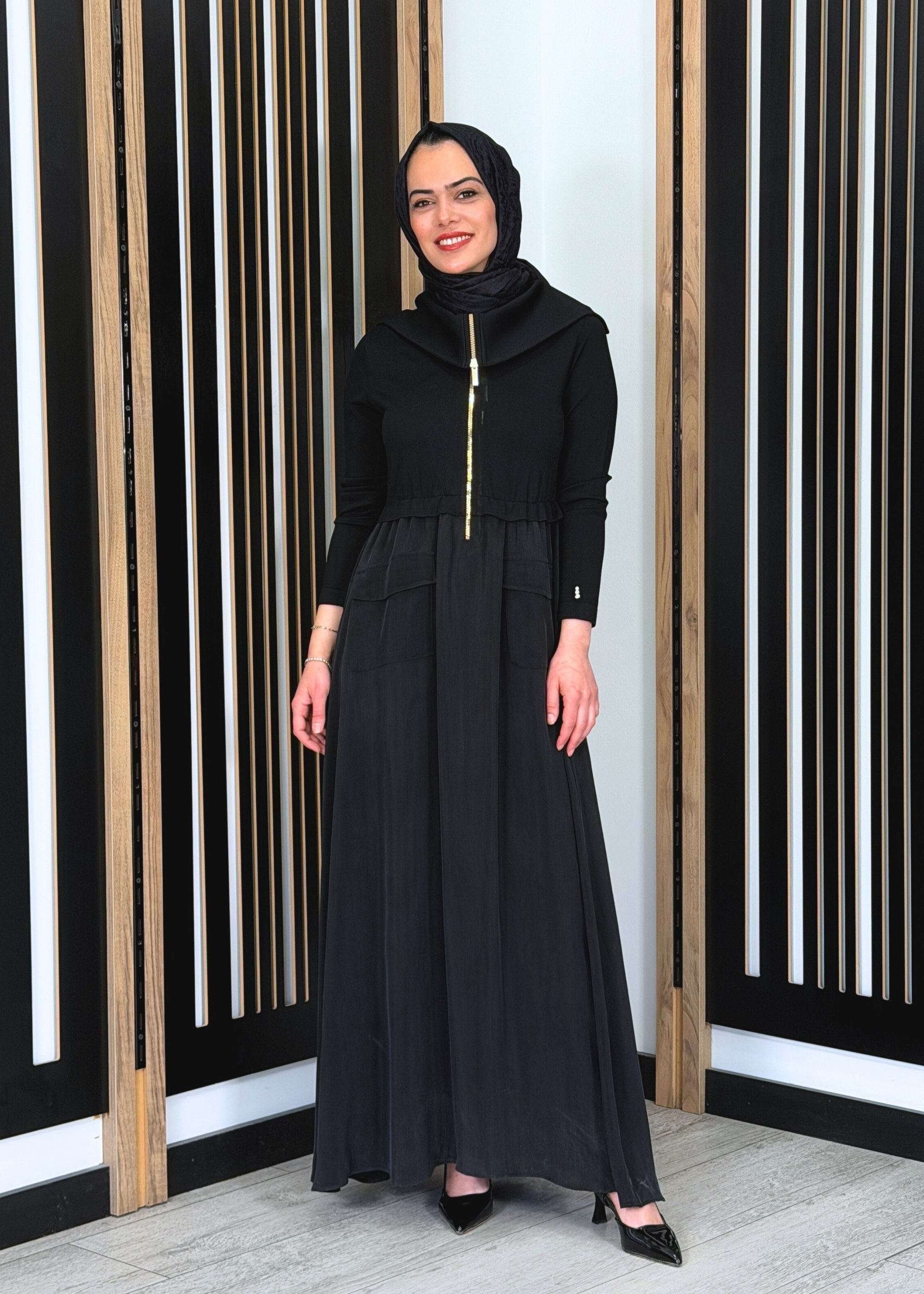 Miss Dalida Fermuar Detaylı Yüksek Yakalı Cupro Elbise BLACK