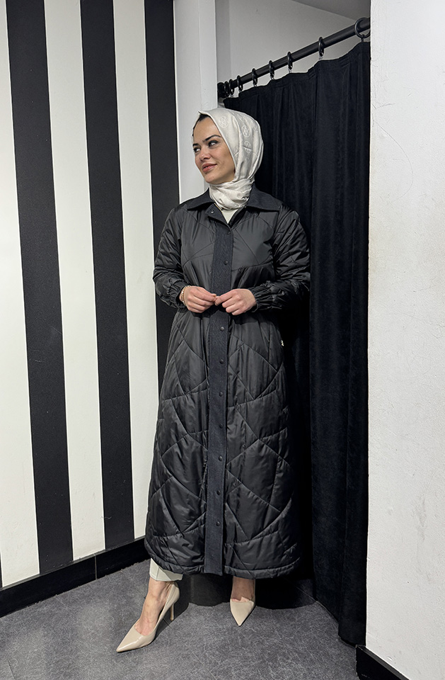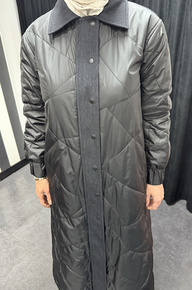 Miss Dalida Fermuarlı Uzun Mont BLACK