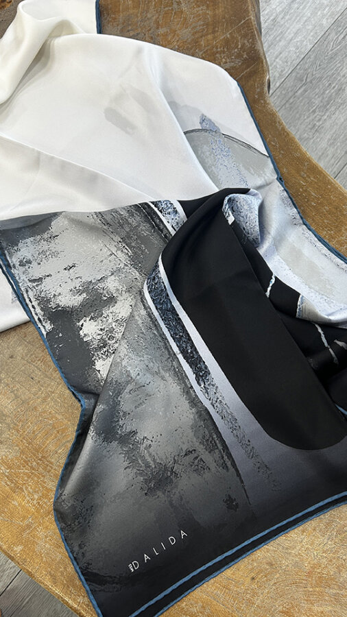 Miss Dalida Geometrik ve Deri Deenli Şal EKRU