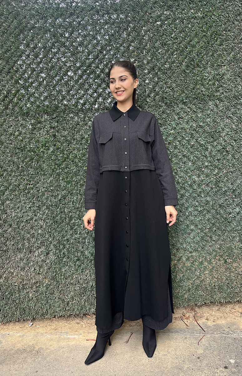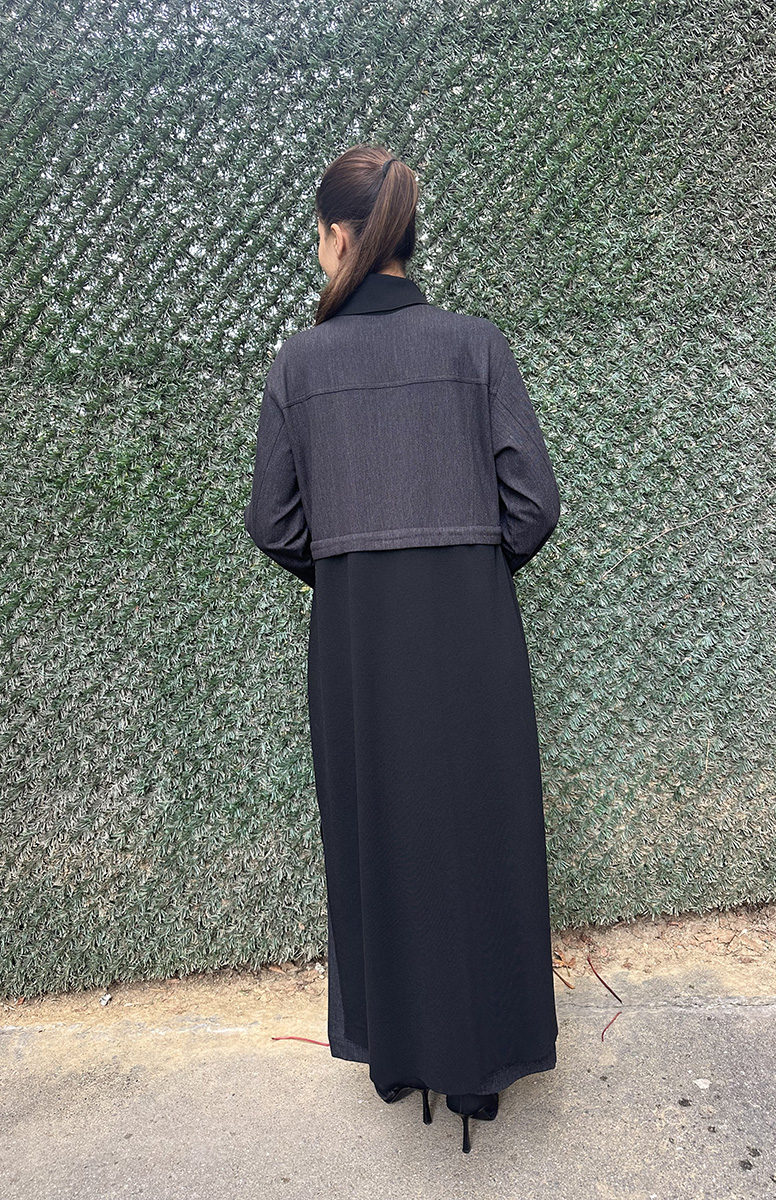 Miss Dalida Gömlek Yaka Denim Detaylı Uzun Ceket BLACK