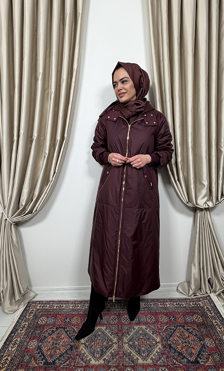 MissWhence Baklava Desenli Şişme Mont MÜRDÜM