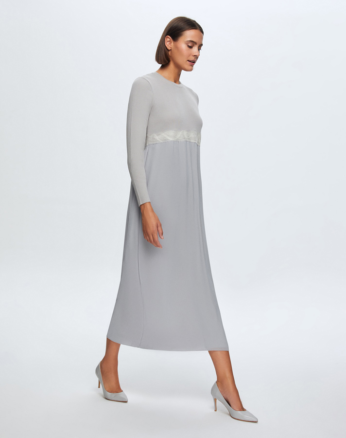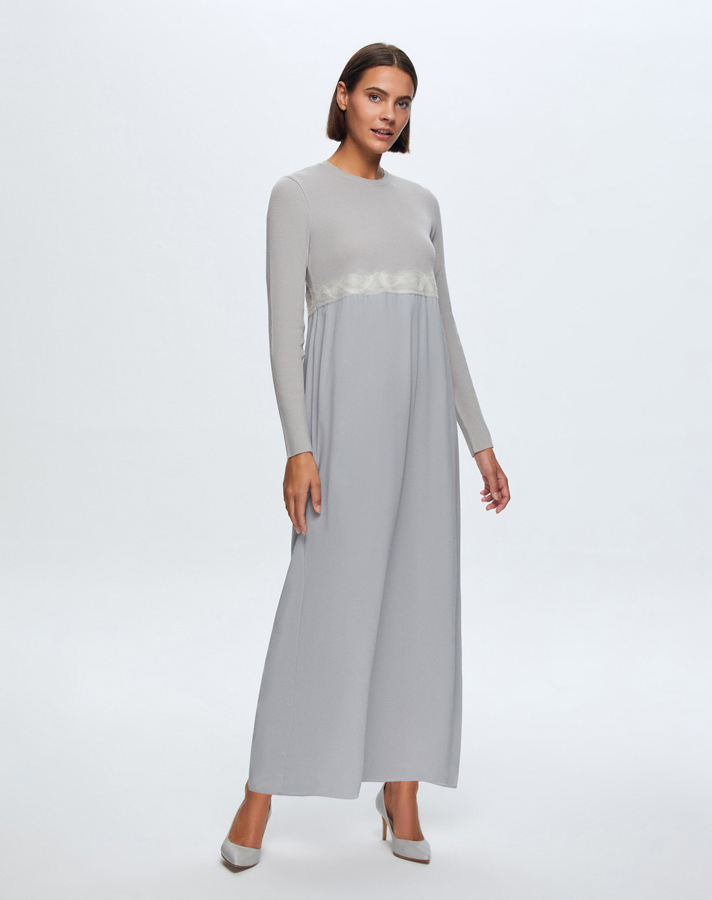 Yeşim Özcan Kolları Taş Detaylı Kat Kat Elbise GRİ