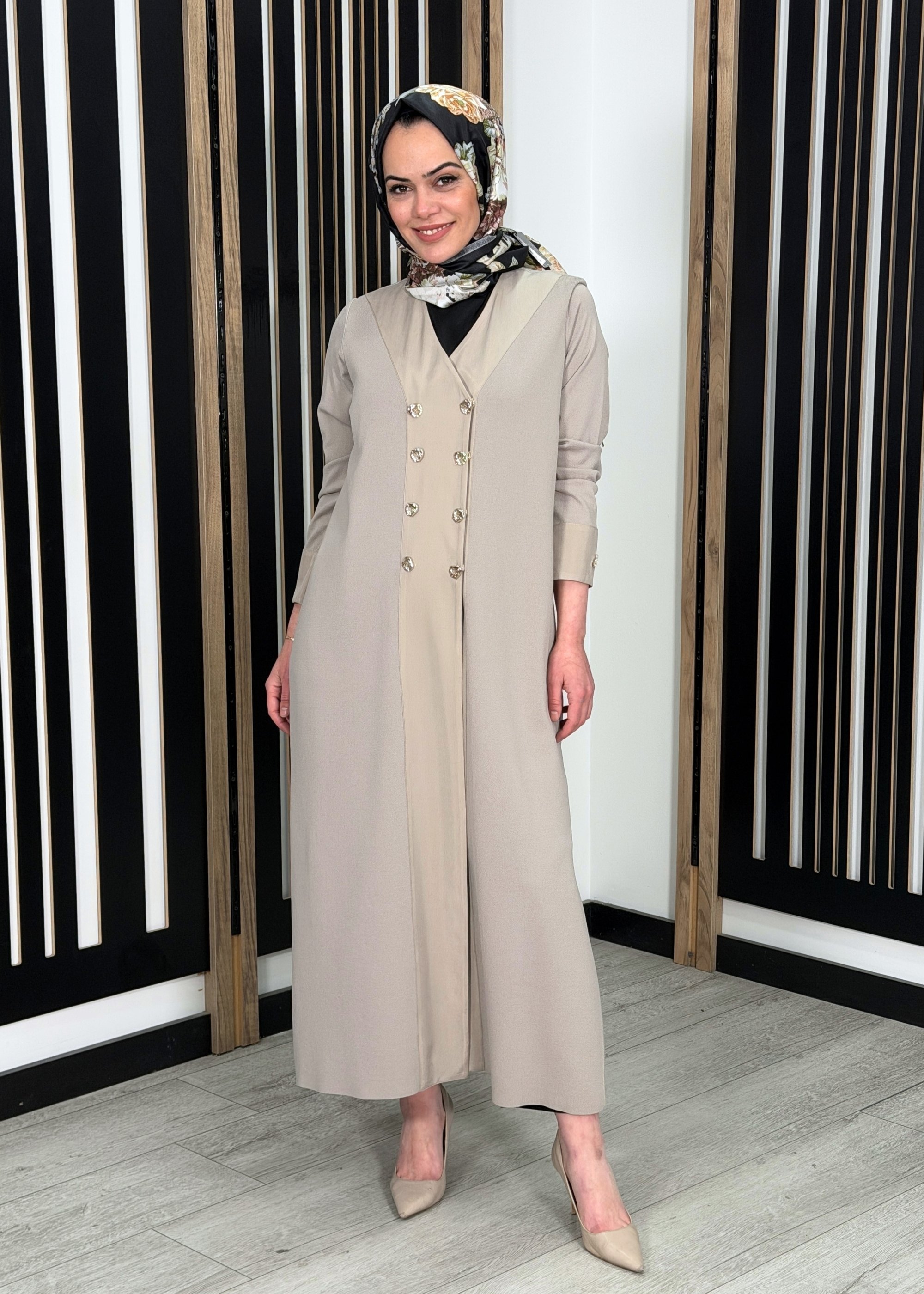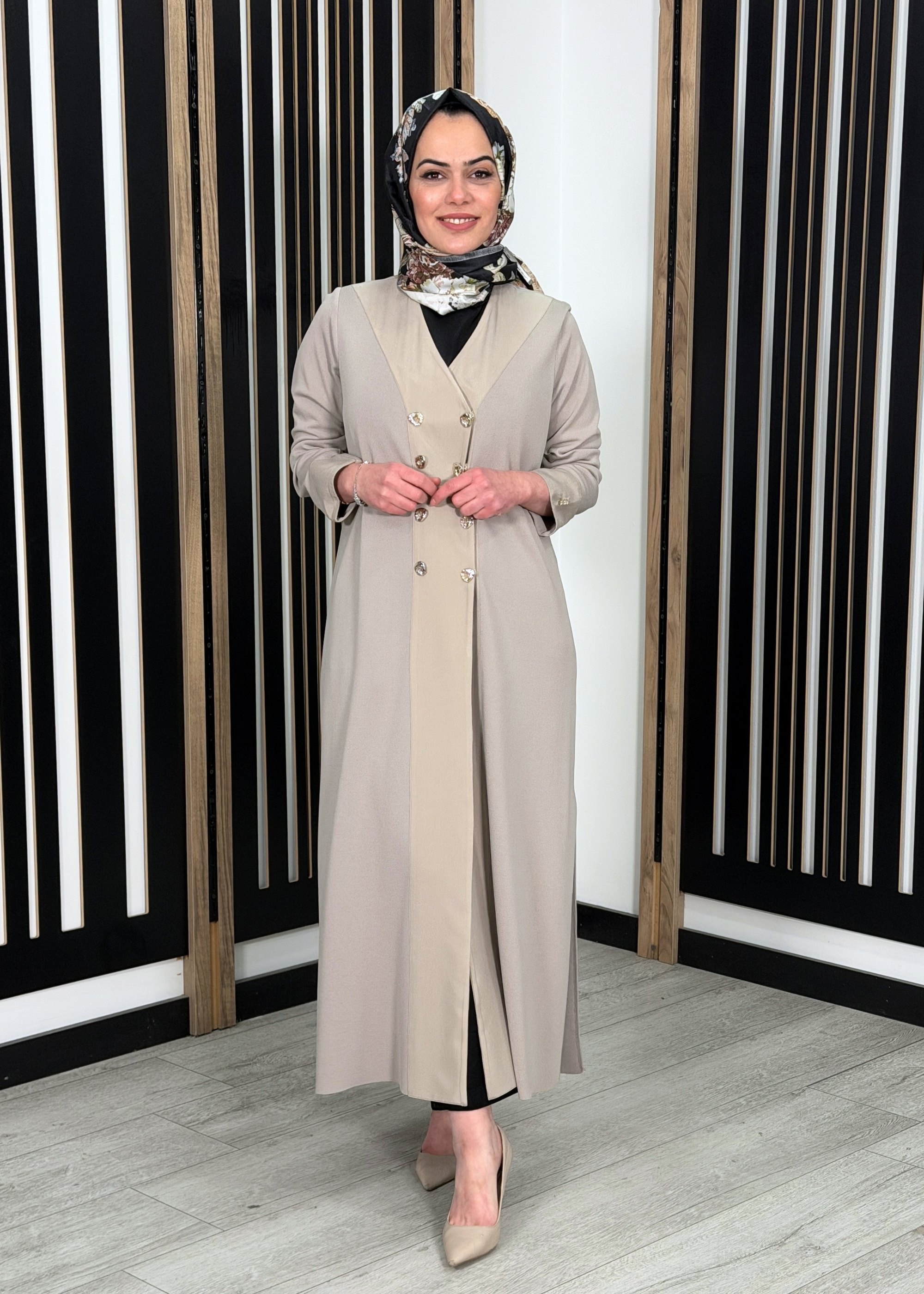 Rahat ve dökümlü kalıba sahiptir. Vücuda yapışmayan yapısı sayesinde uzun ve zarif bir silüet oluşturur. Uzun boy kesimi ile tesettür kombinlere uyumlu, akıcı ve şık bir duruş sunar.