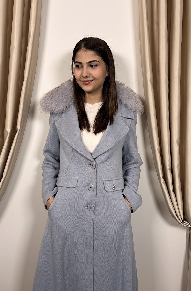 Miss Dalida Kürk Yaka Uzun Triko Manto BLUE