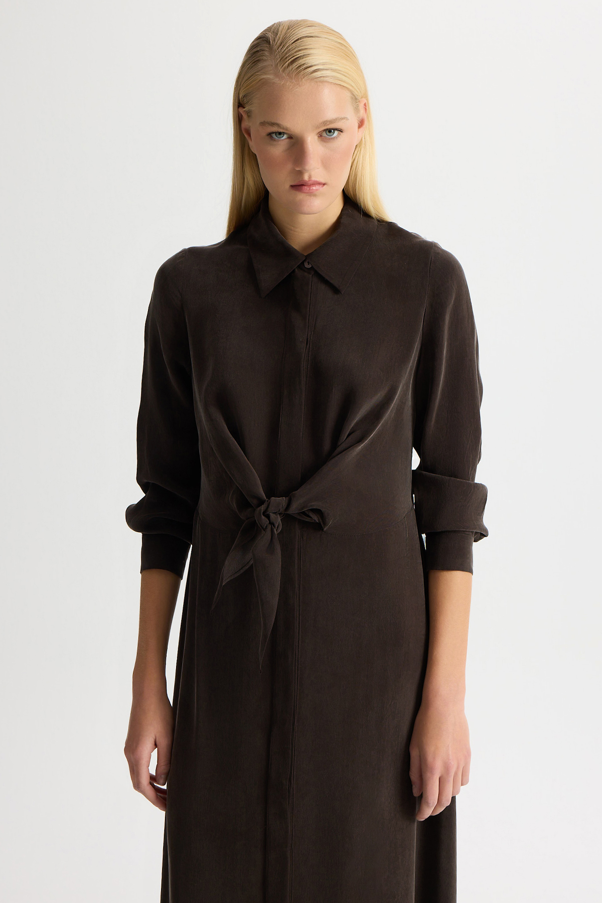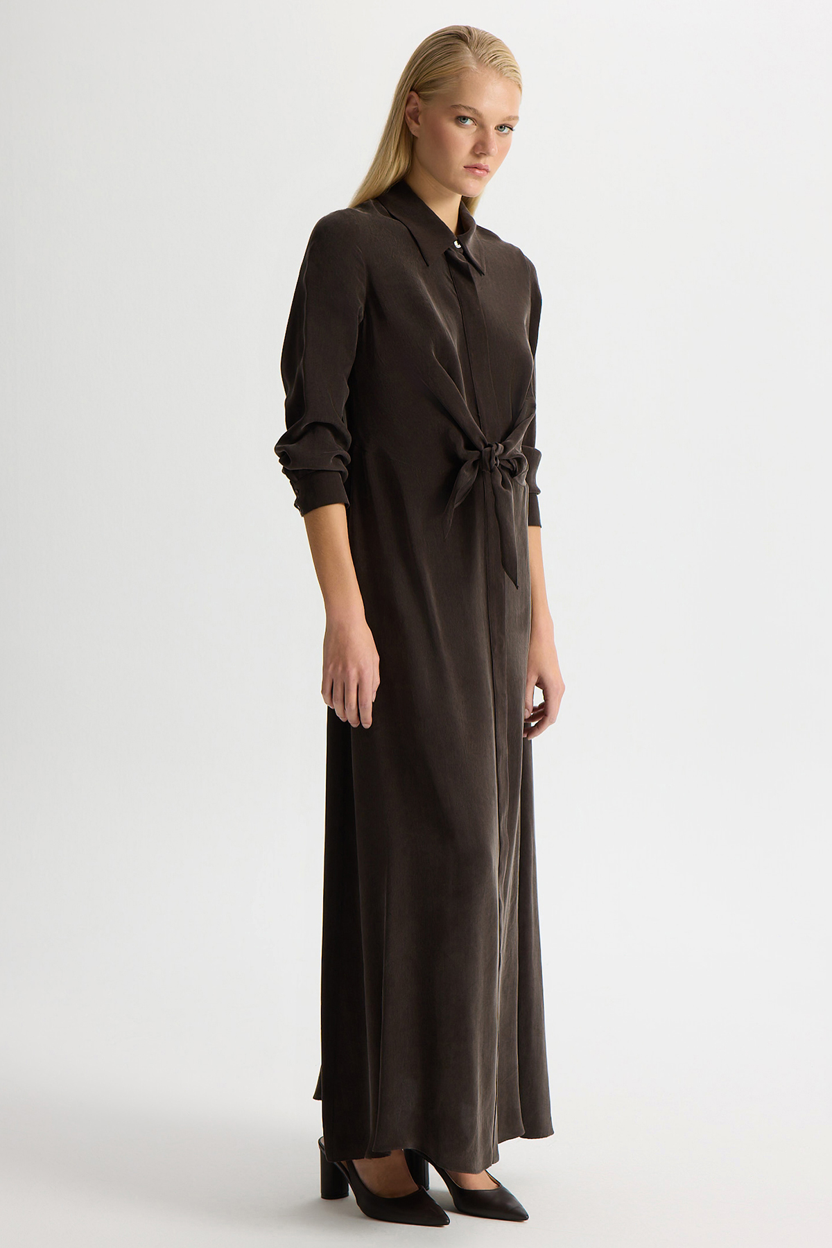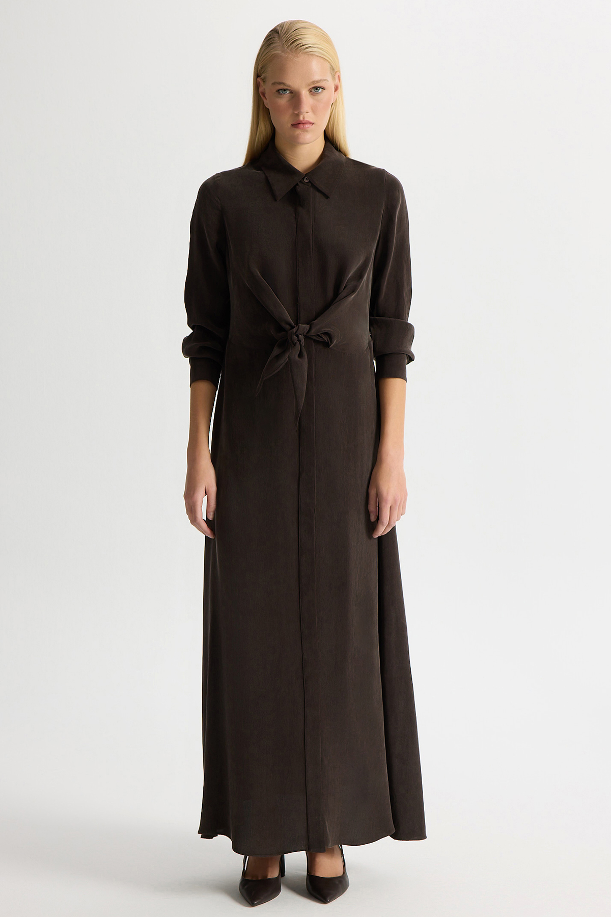 Miss Dalida Ön Kısmı Bağlama Detaylı Cupro Elbise Cacao Powder