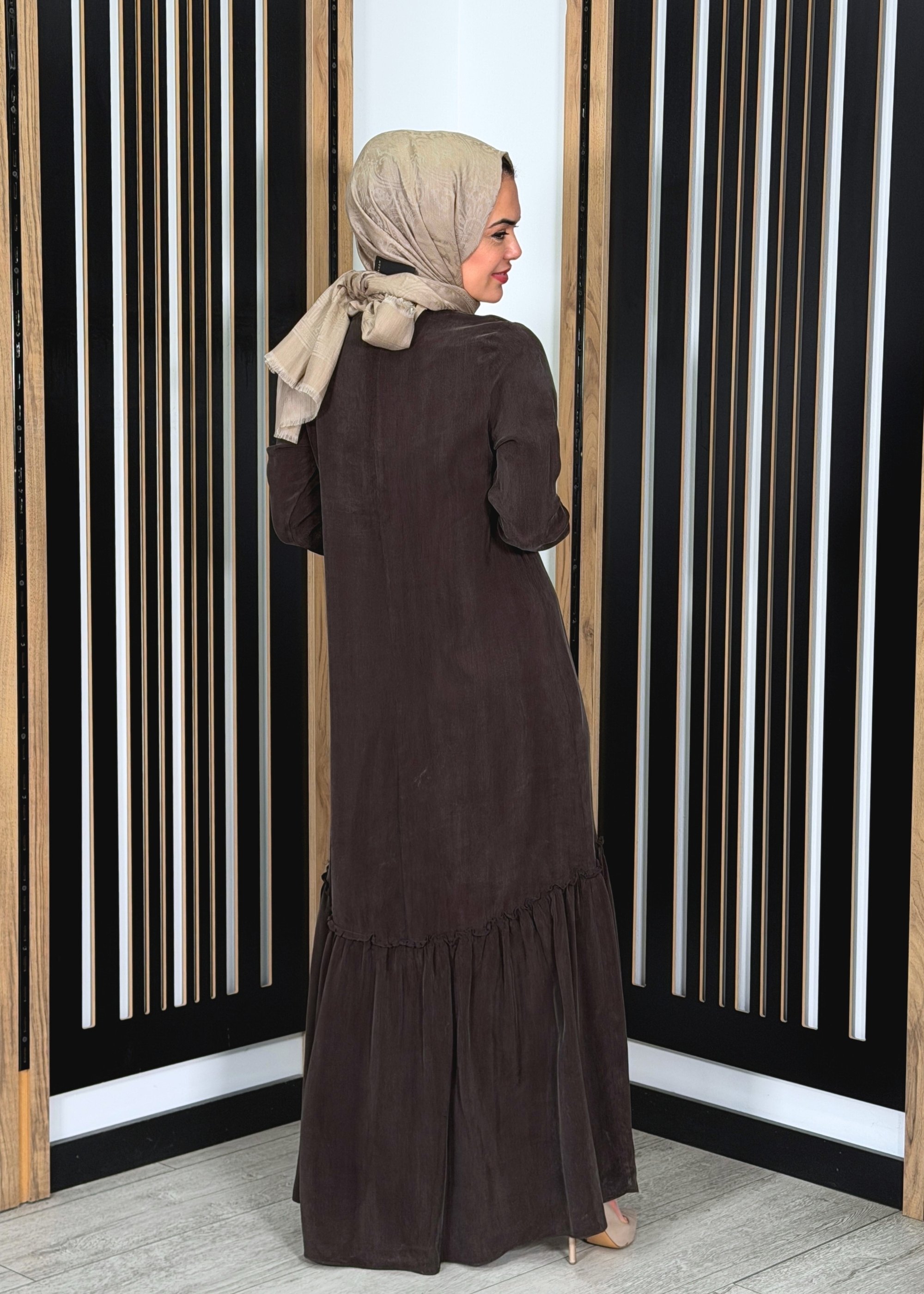 Rahat ve dökümlü kalıba sahiptir. Vücuda yapışmayan kesimi sayesinde akışkan ve zarif bir görünüm sağlar. Uzun boyu ile tesettür kombinlere uyumlu, şık ve konforlu bir duruş sunar.