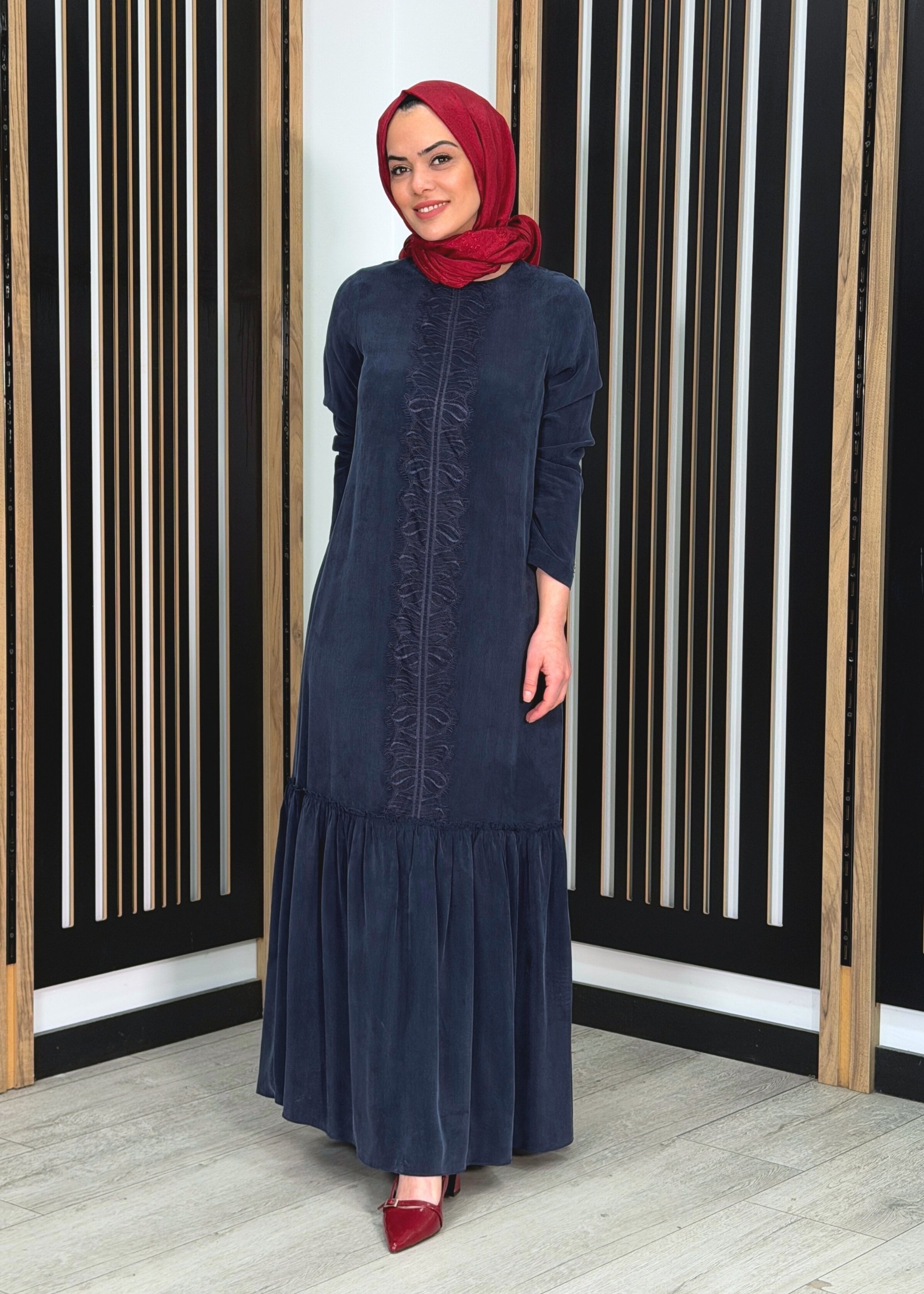 Rahat ve dökümlü kalıba sahiptir. Vücuda yapışmayan kesimi sayesinde akışkan ve zarif bir görünüm sağlar. Uzun boyu ile tesettür kombinlere uyumlu, şık ve konforlu bir duruş sunar.