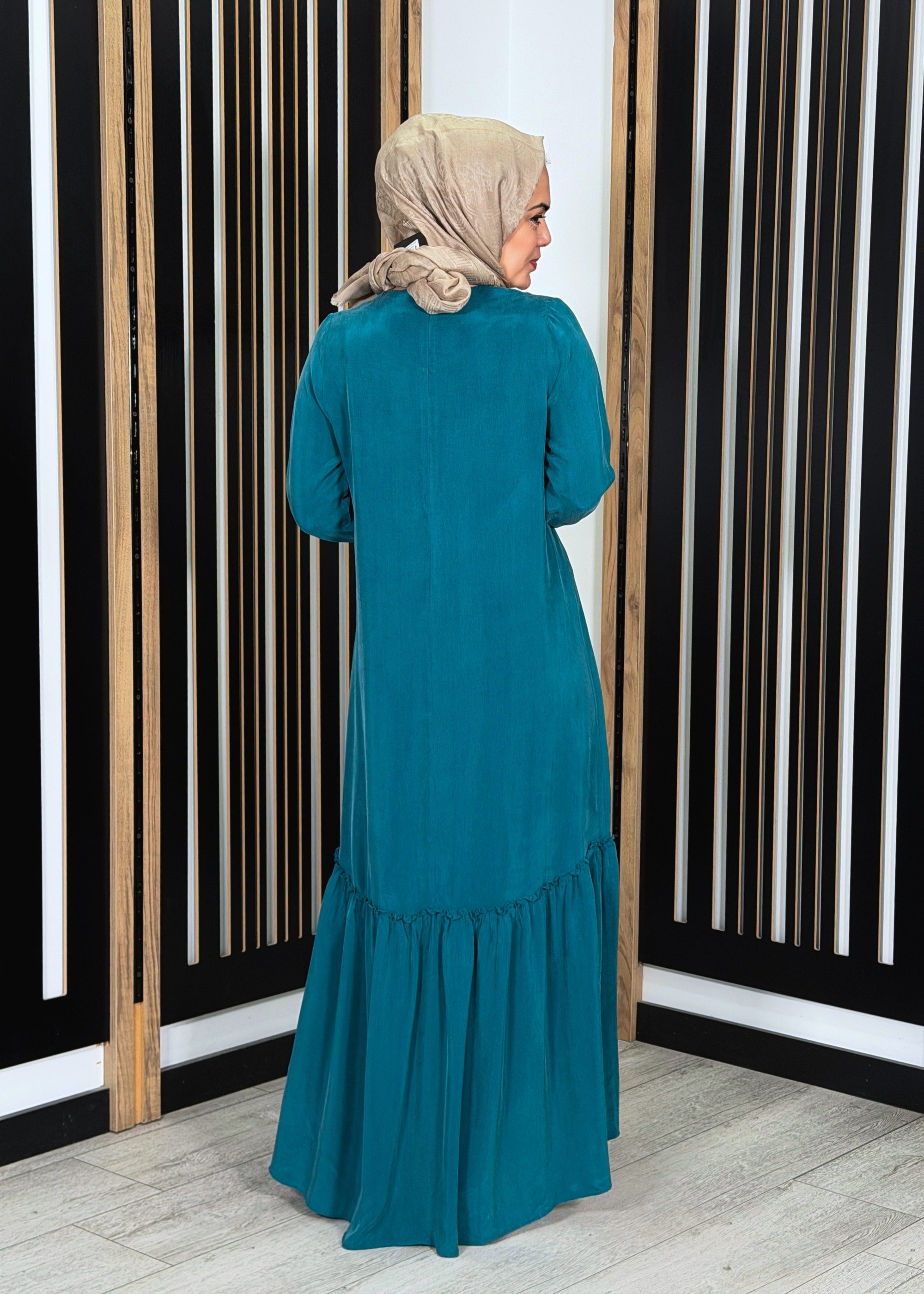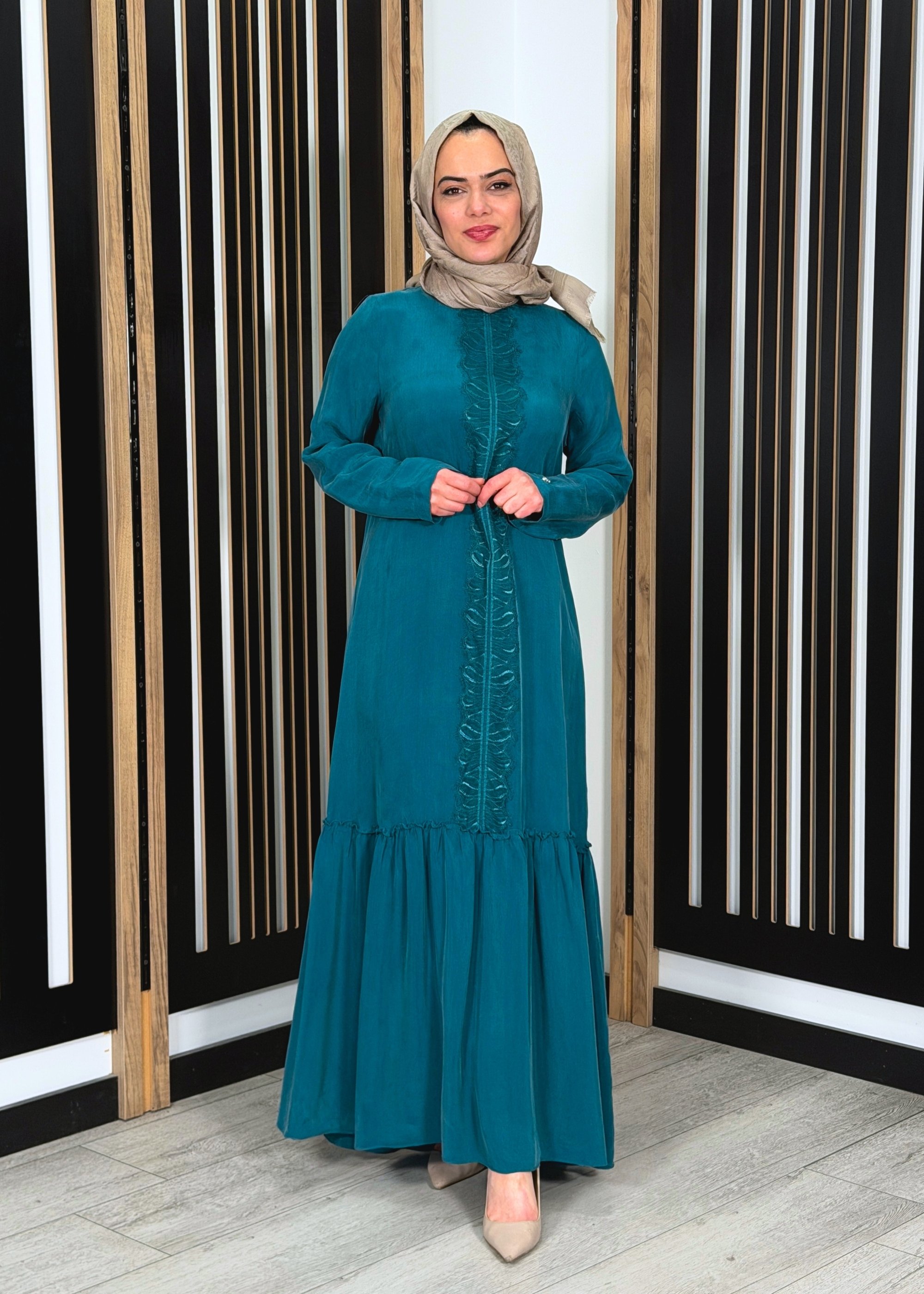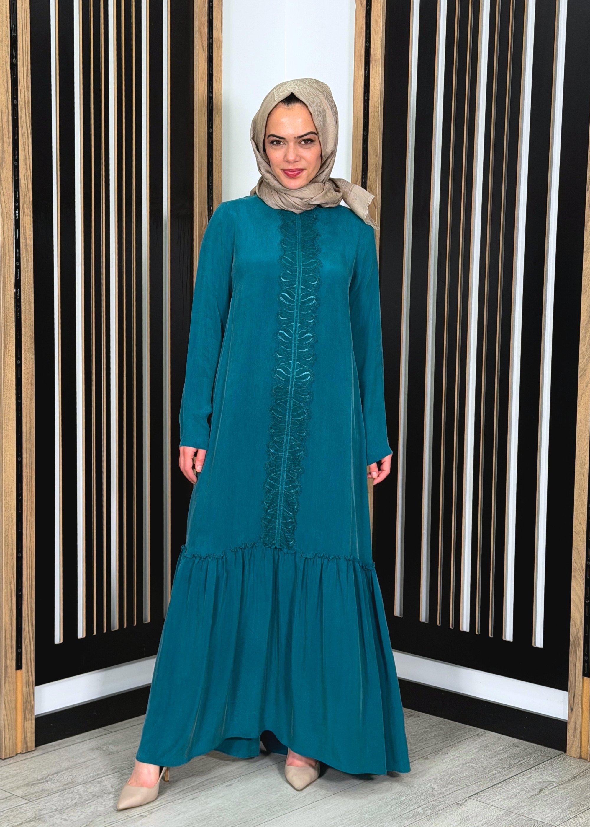 Rahat ve dökümlü kalıba sahiptir. Vücuda yapışmayan kesimi sayesinde akışkan ve zarif bir görünüm sağlar. Uzun boyu ile tesettür kombinlere uyumlu, şık ve konforlu bir duruş sunar.