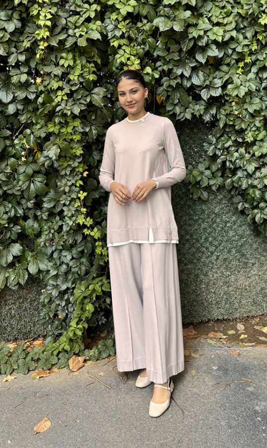 Miss Dalida Önü Dikişli Bol Paça Pantolon Stone