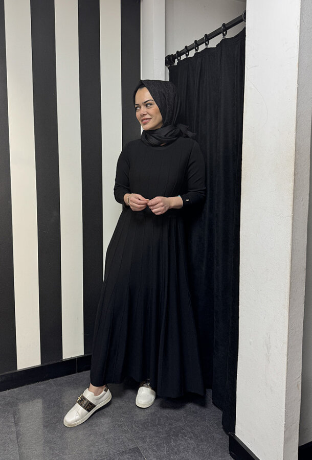 Miss Dalida Örgü Teknikli Triko Elbise BLACK