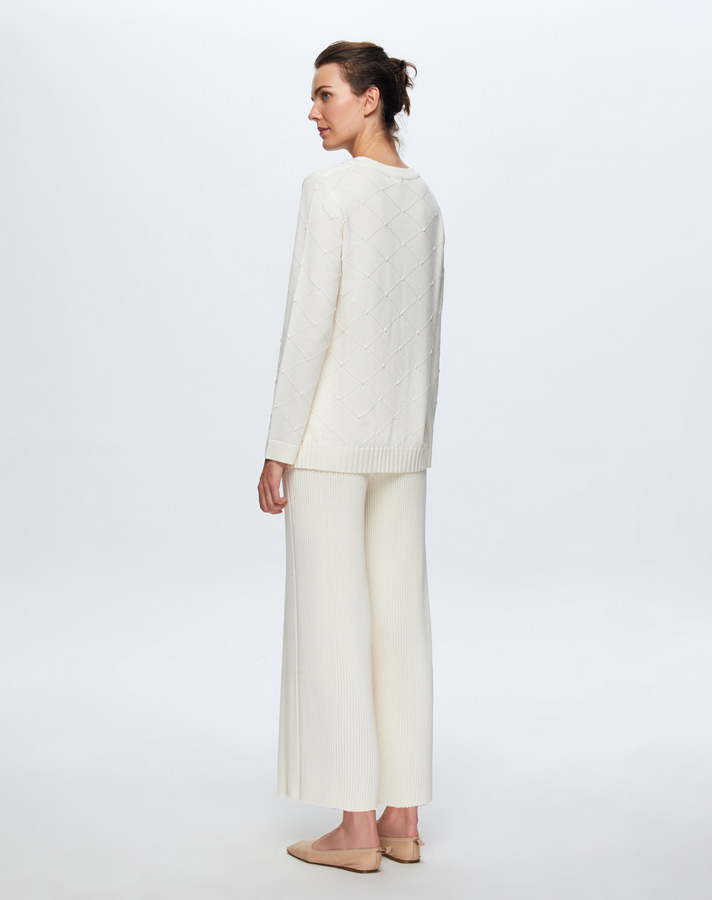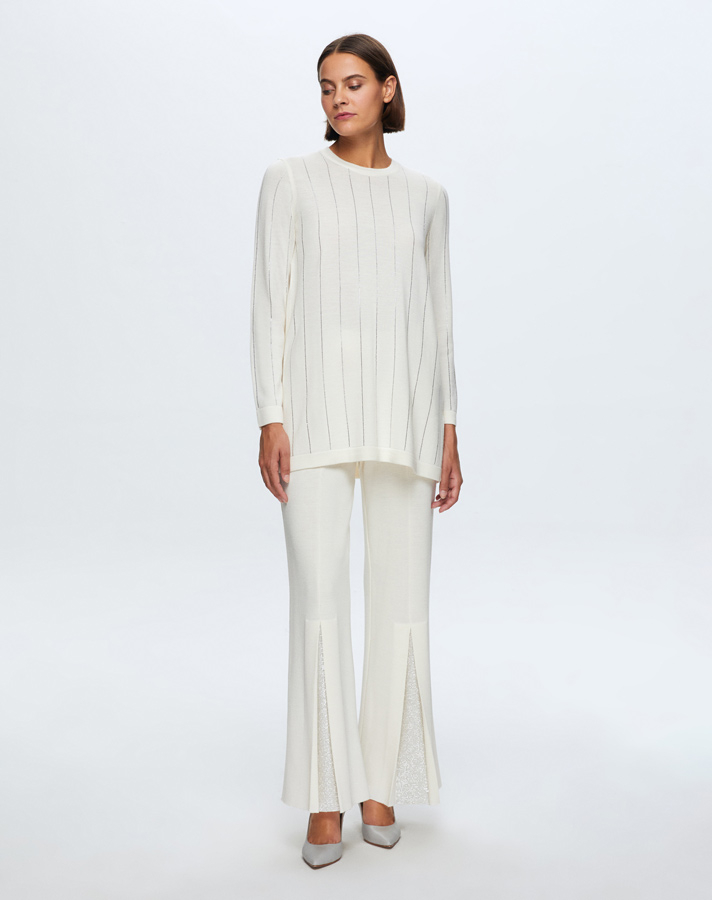 Miss Dalida Paçası Taşlı Triko Pantolon Fede/Ecru