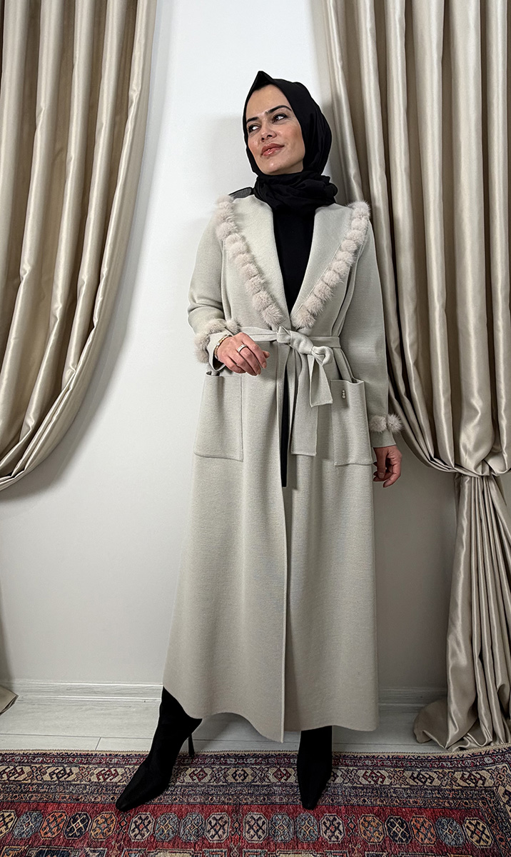 Ürün boy 140 cm Ürün içeriği %50 fine merino wool %50 dralon kürk ponpon %100 polyester 1 beden 36-38 2 beden 40-42 3 beden 44-46 bedene uyumludur