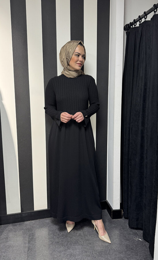 Miss Dalida Saç Örgü Detaylı Triko Elbise BLACK