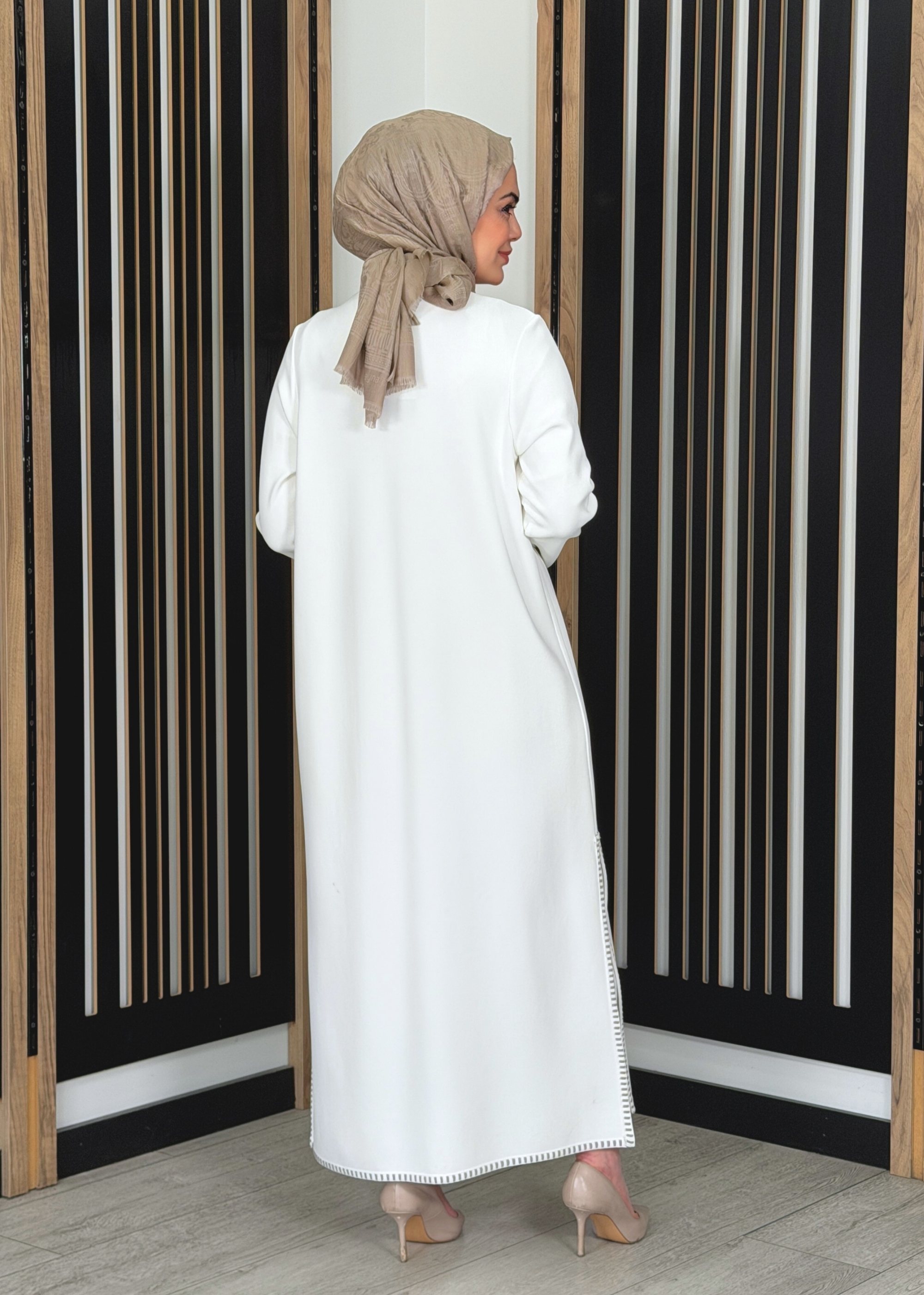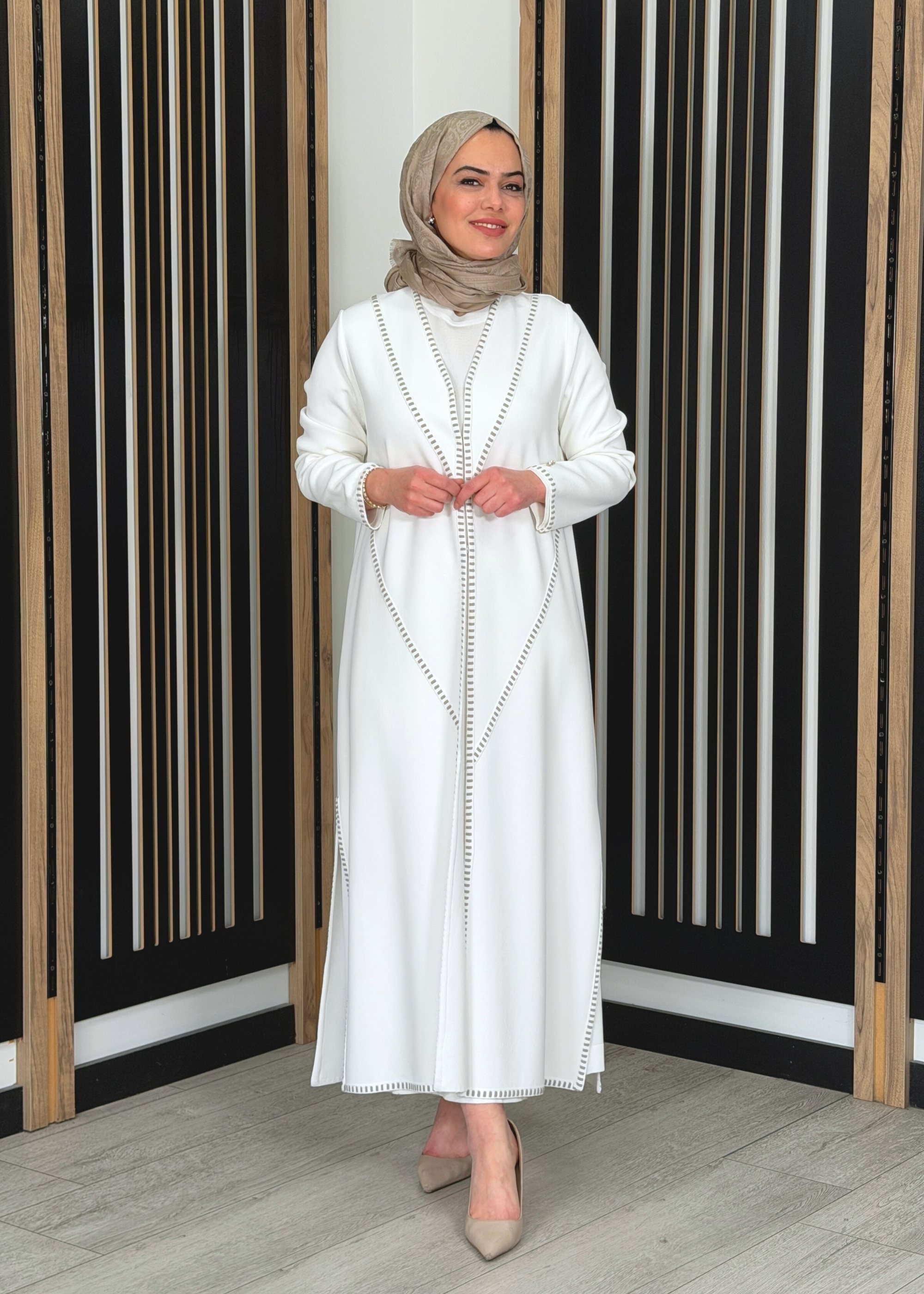 Rahat ve dökümlü kalıba sahiptir. Vücuda yapışmayan yapısı sayesinde uzun ve zarif bir duruş sunar. Uzun boy kesimi ile tesettür kombinlere uyumlu, konforlu ve şık bir form oluşturur.
