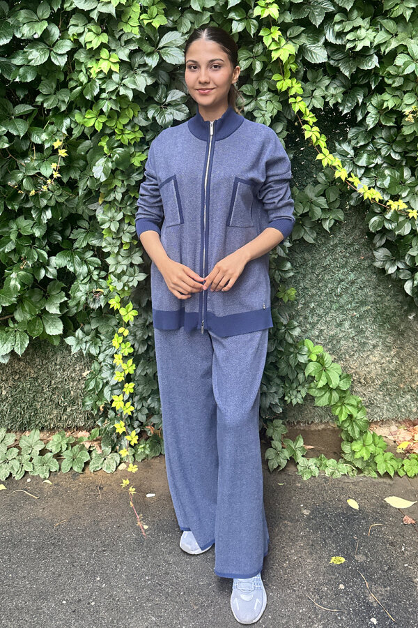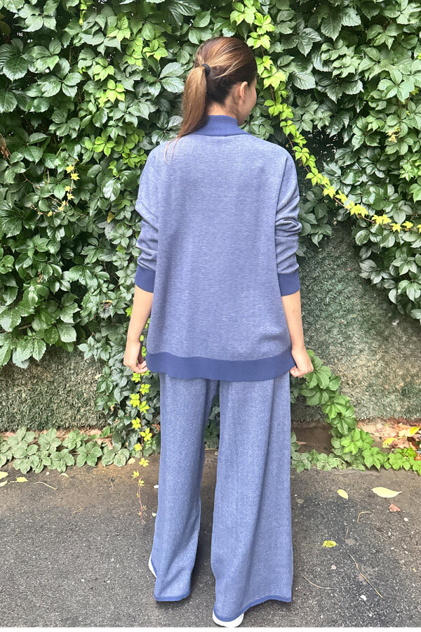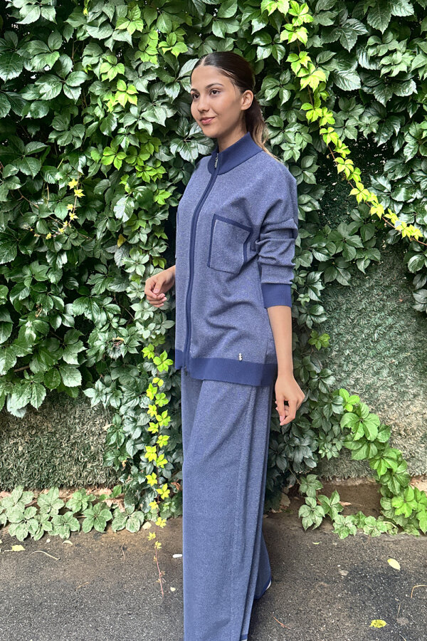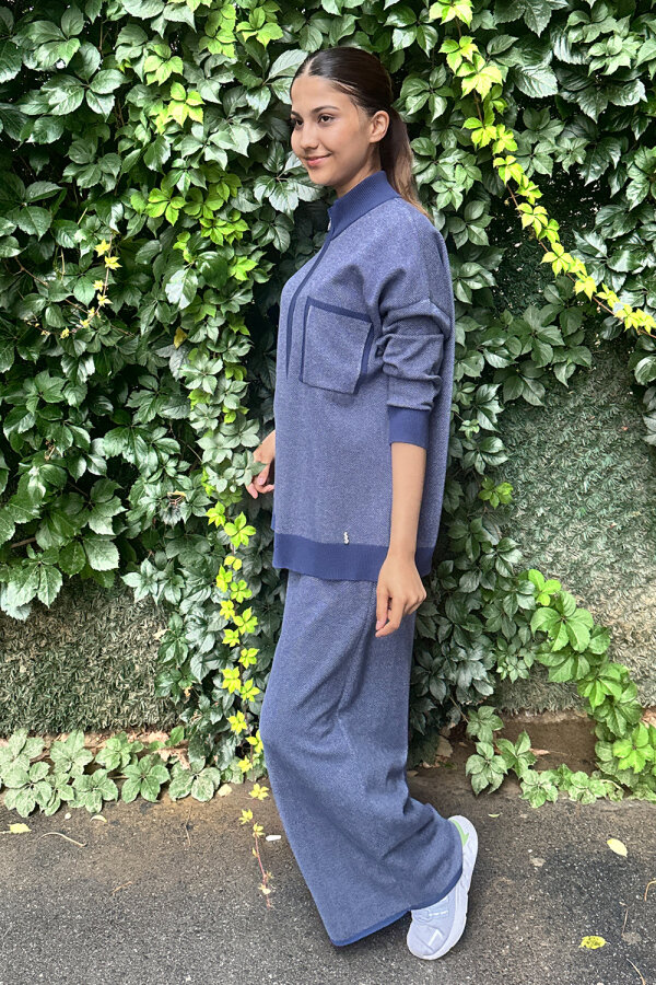 Miss Dalida Dik Yaka Fermuarlı Cepli Triko Ceket İNDİGO