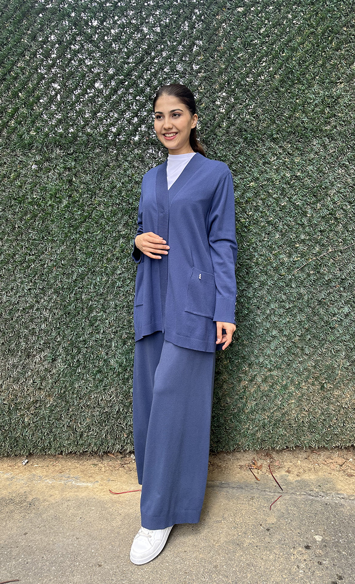 Miss Dalida Touche Me Bol Paça Triko Pantolon İNDİGO