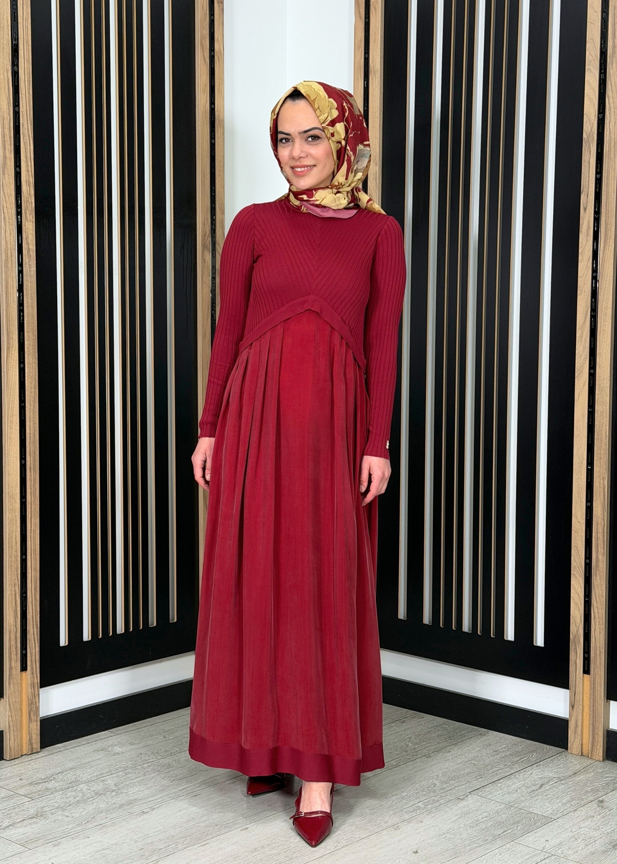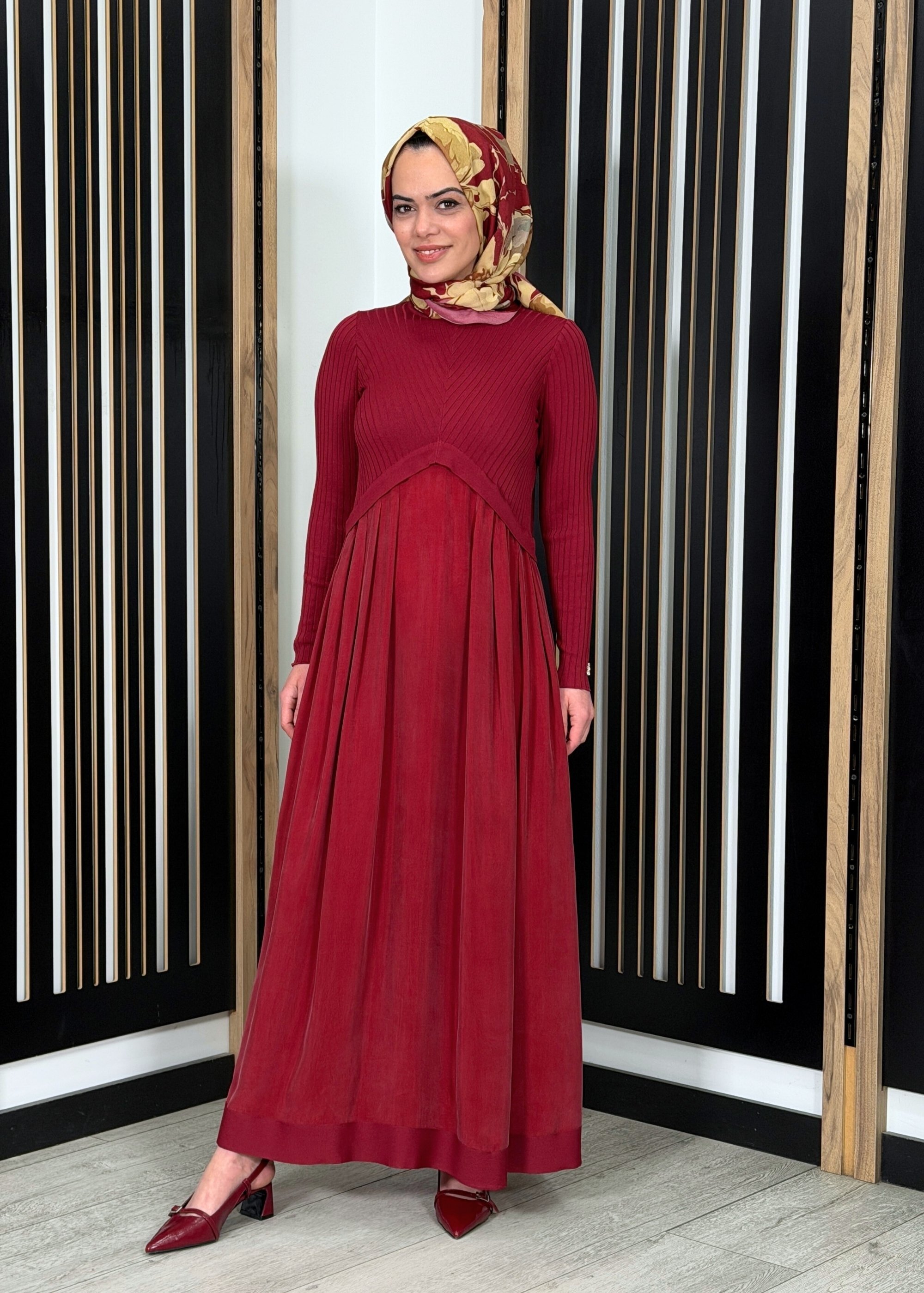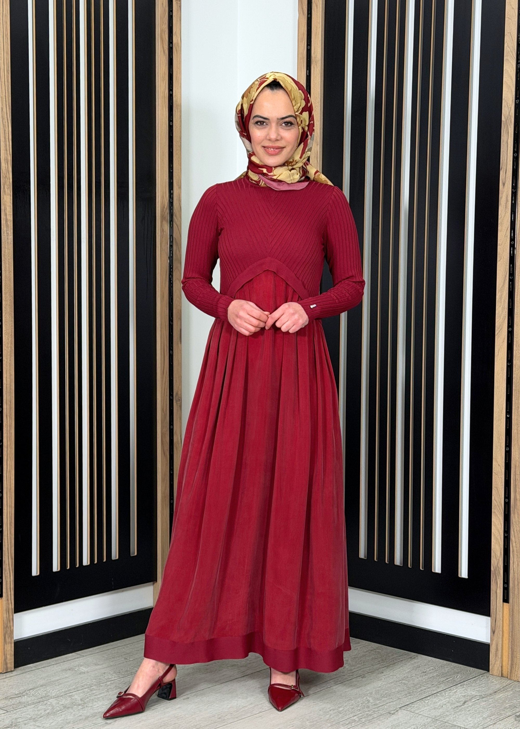 Zarif ve dökümlü kesimi ile öne çıkan bu uzun elbise, sade şıklığı konforla bir araya getirir. Rahat kalıbı sayesinde vücut hatlarını sıkmadan akıcı bir duruş sağlar ve gün boyu hareket özgürlüğü sunar. Cupro dokulu kumaş yapısı ile hafif, nefes alabilen ve yumuşak bir kullanım deneyimi sunarken uzun boy formu tesettür giyime uygun şık ve dengeli bir siluet oluşturur.