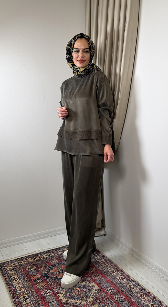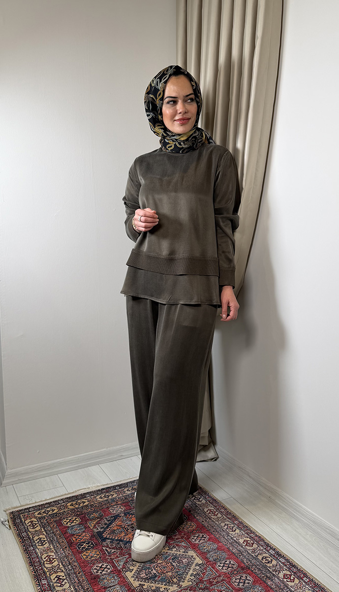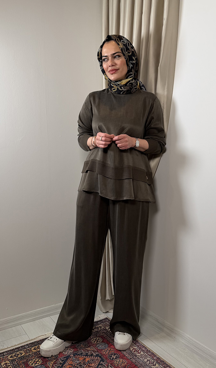 Miss Dalida Triko Detaylı Cupra Kısa Tunik TAUPE