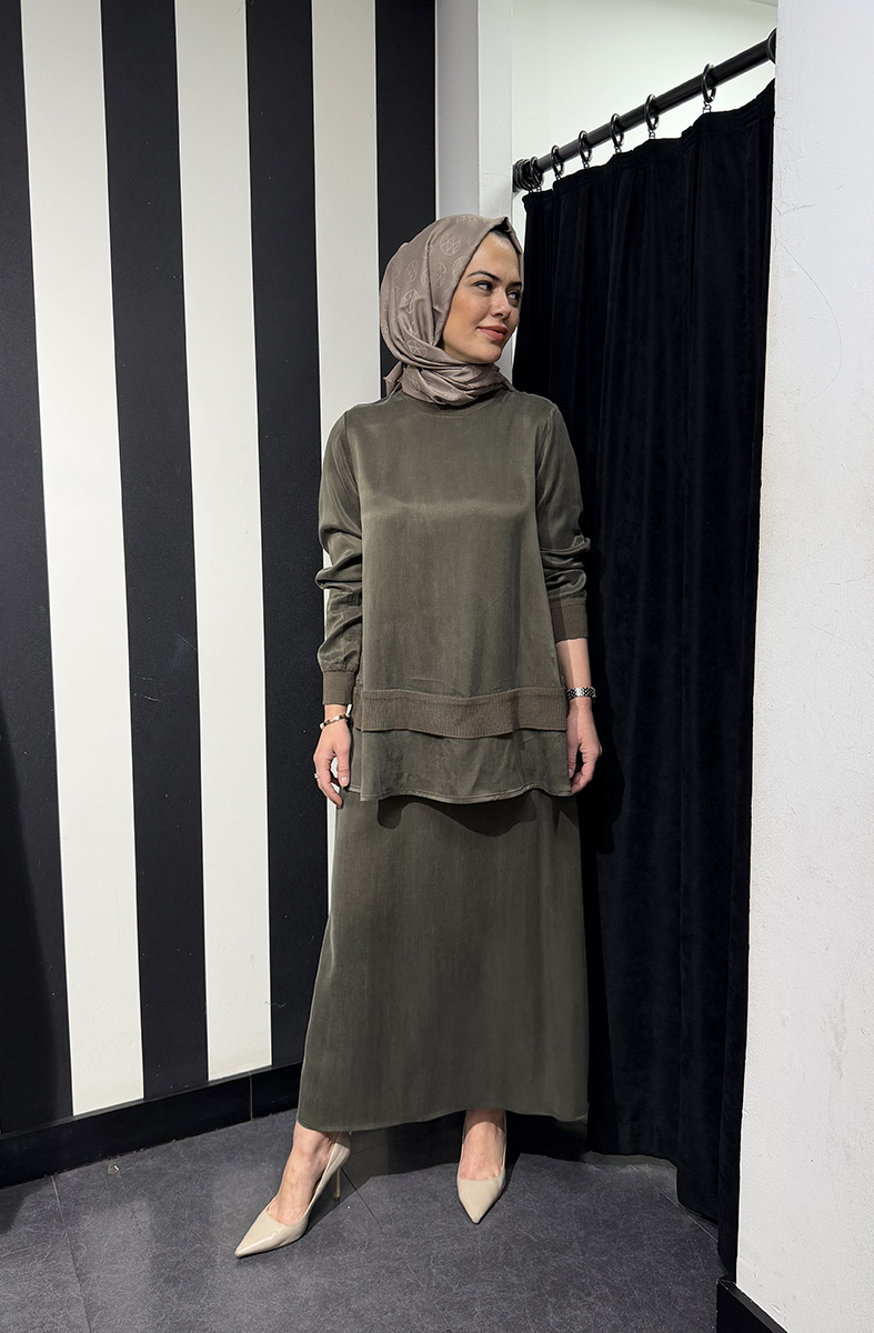Miss Dalida Triko Detaylı Cupra Tunik TAUPE