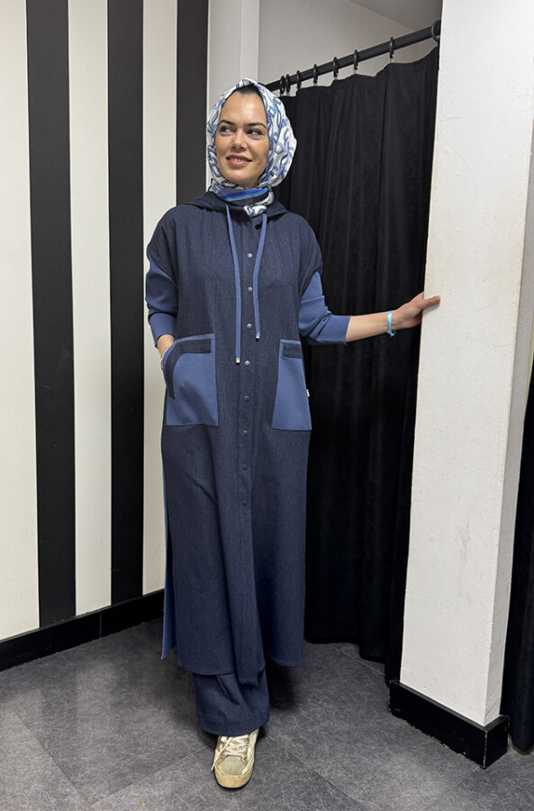 Miss Dalida Triko Detaylı Uzun Denim Kap İNDİGO