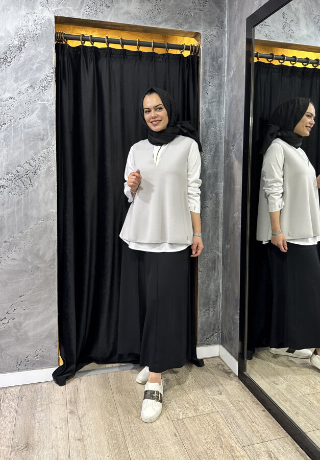 Miss Dalida V Yaka Kolsuz Triko Tunik Light Grey